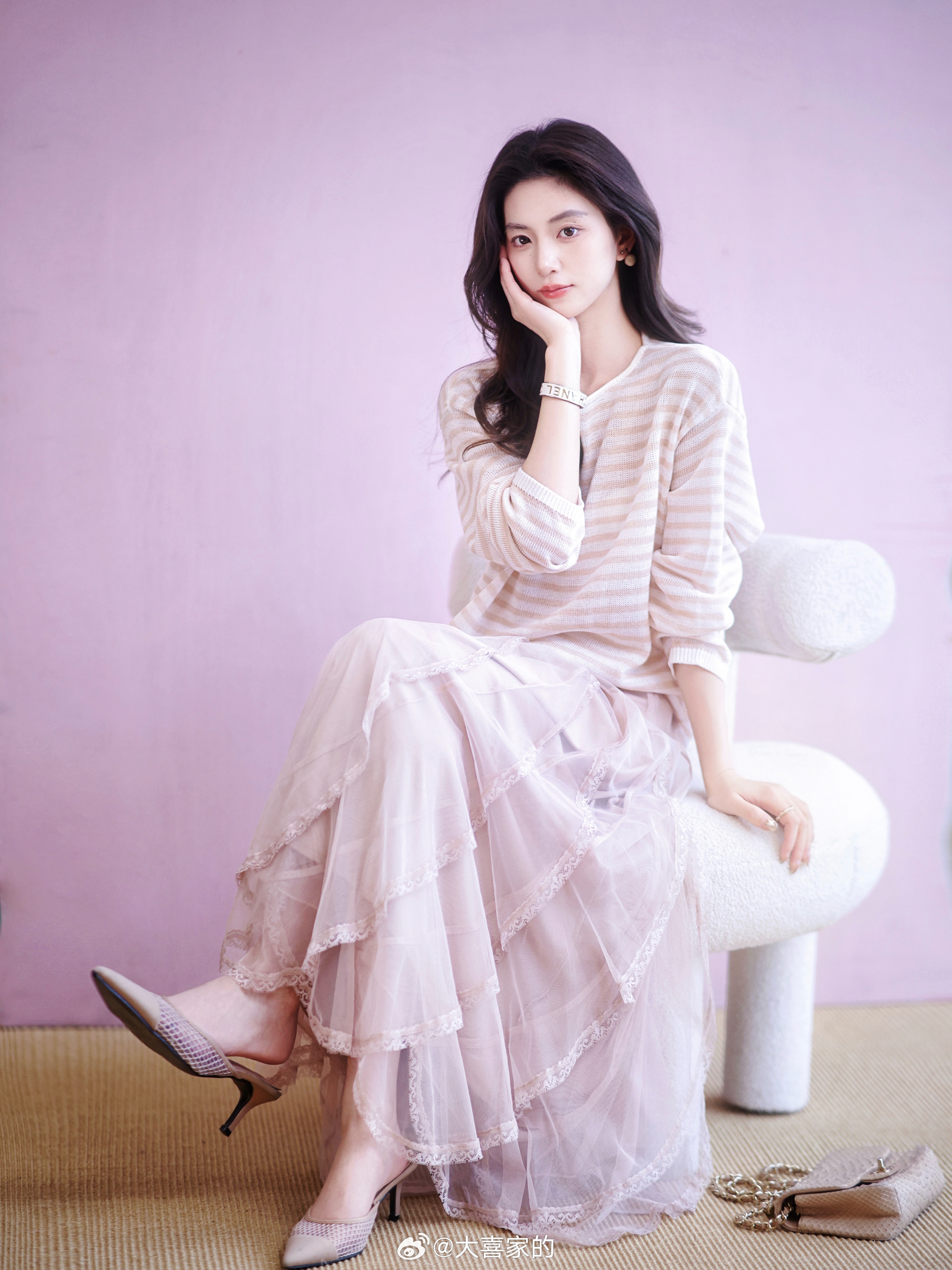 浪漫温柔的春天越来越近啦~天丝*亚麻 撞色条纹针织衫颜色真的巨美!朦胧仙气