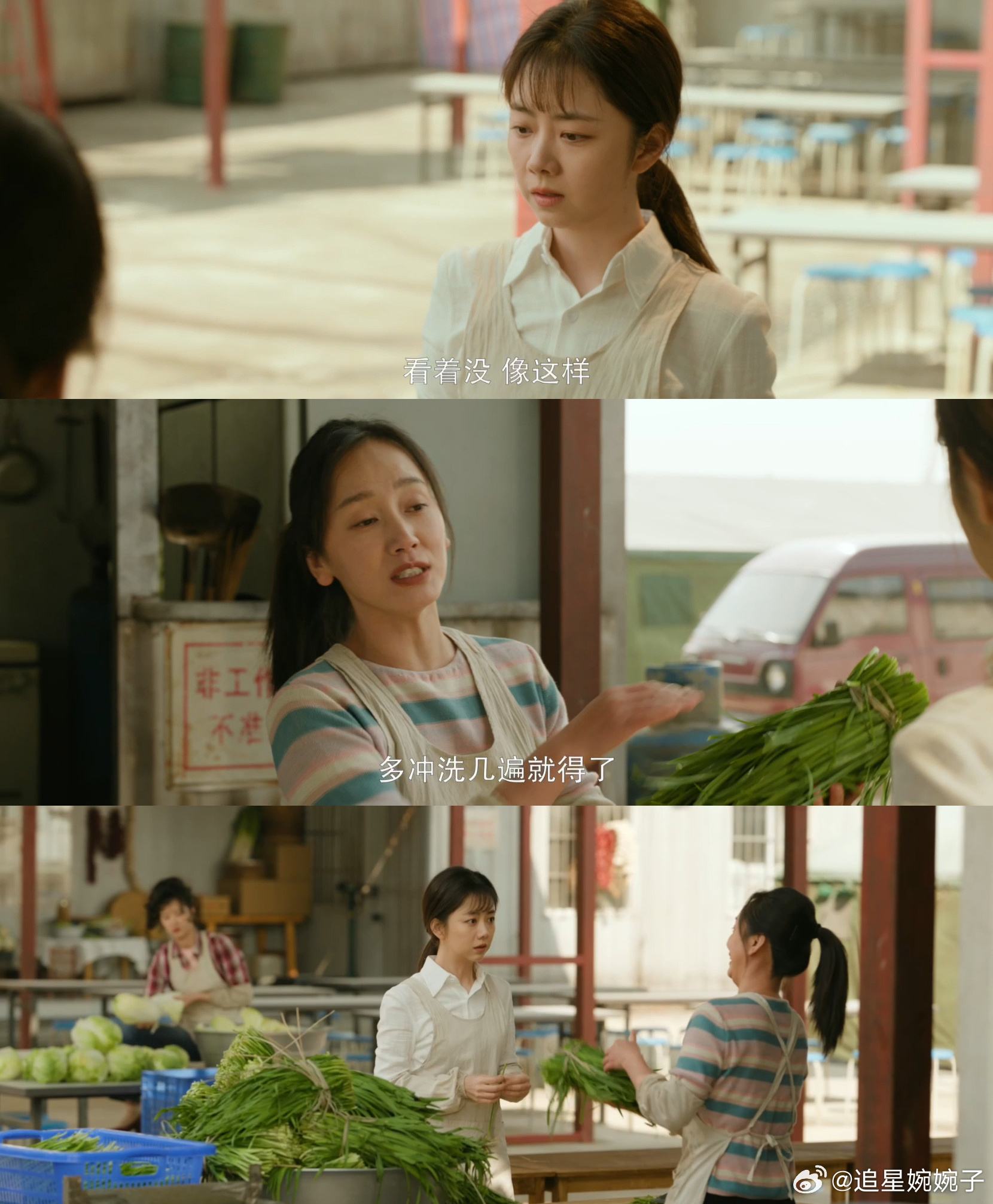 起猛了在国产剧看见真的割韭菜了 看方婉之割韭菜从生疏到熟练真的超有成就感😜!踏实上进又低调谦和,不懂就主动请教李娟,没有一点新人娇气,认真搞事业的样子太圈粉💪