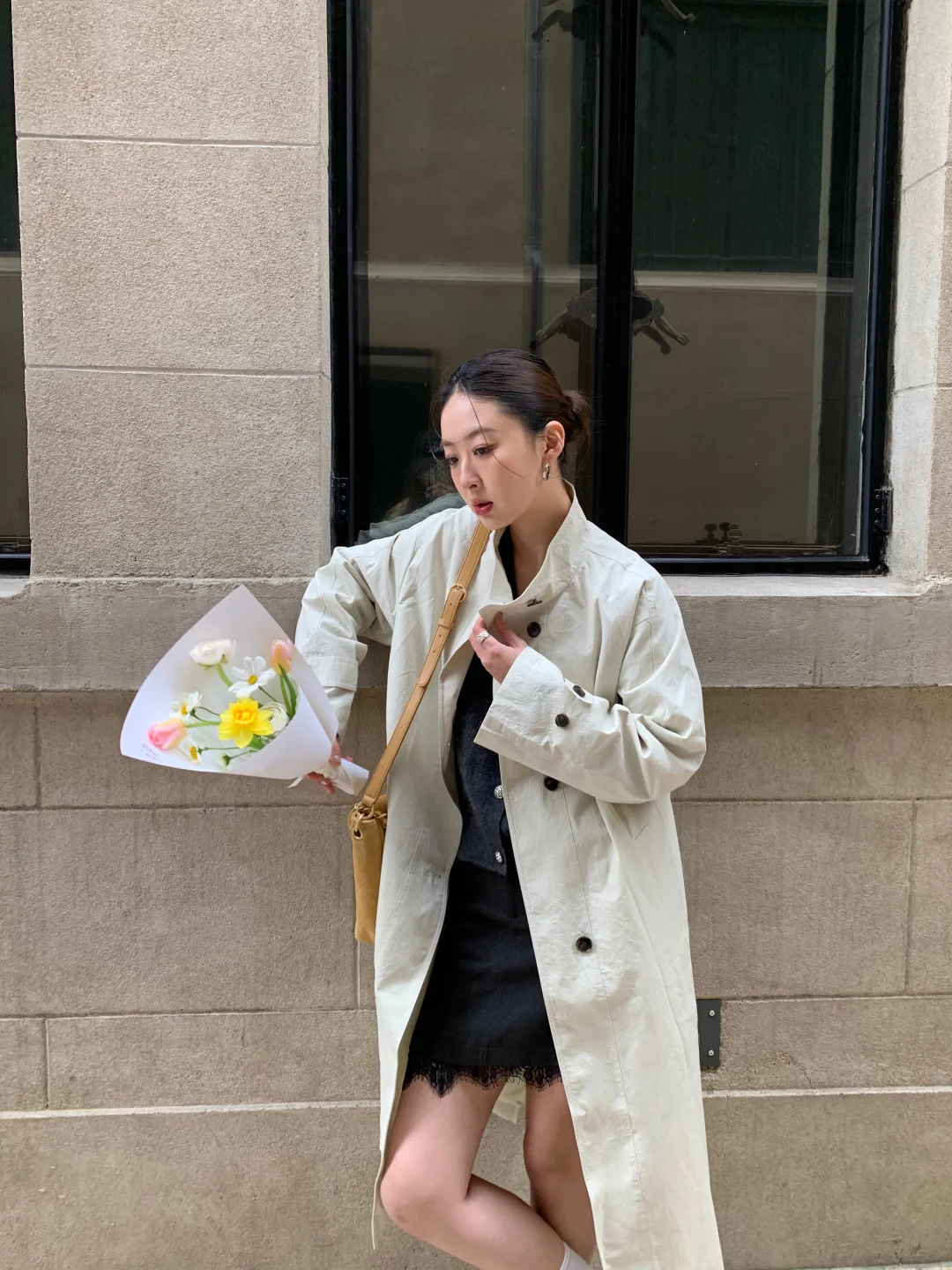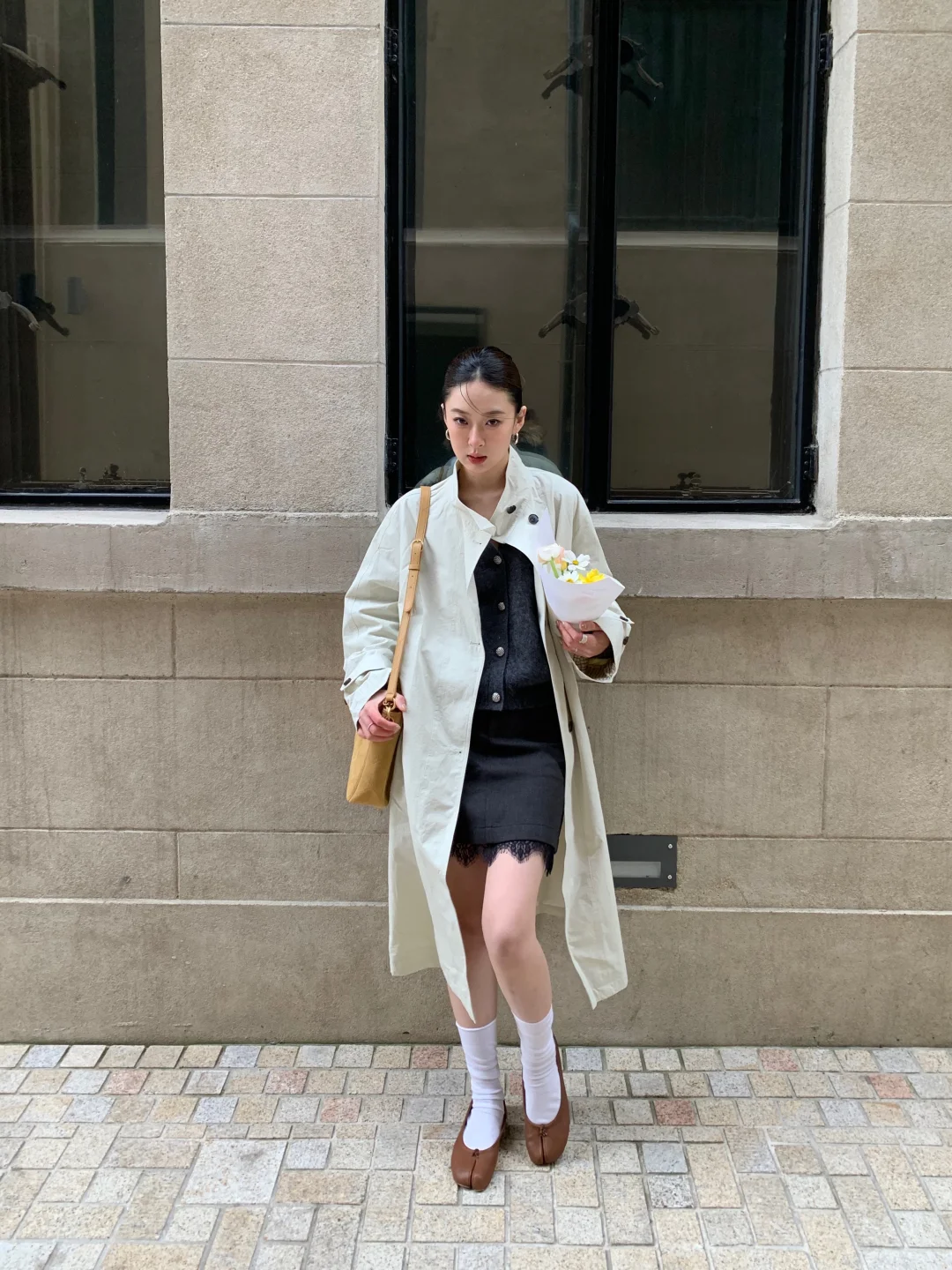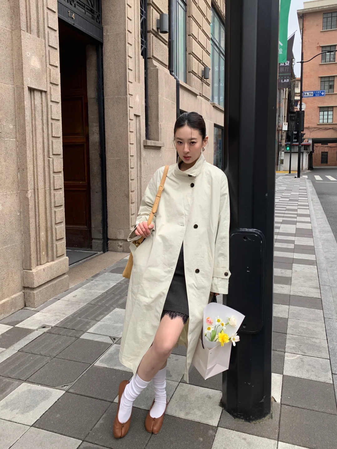 天气坏 但是人好👌🏻 阴天的外滩源人好少 更像欧洲了 穿上风衣氛围感upup 清浅色调自带柔光滤镜 垂感好 不压个子 随性一穿就是高级松弛感 春风一吹 温柔又治愈~