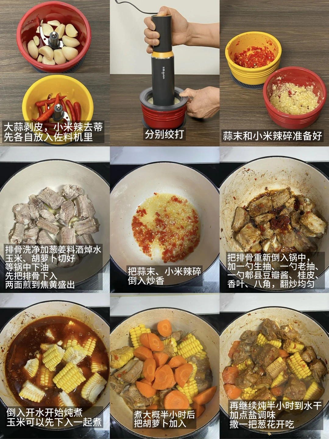 玉米|排骨2条|胡萝卜|蒜|小米辣