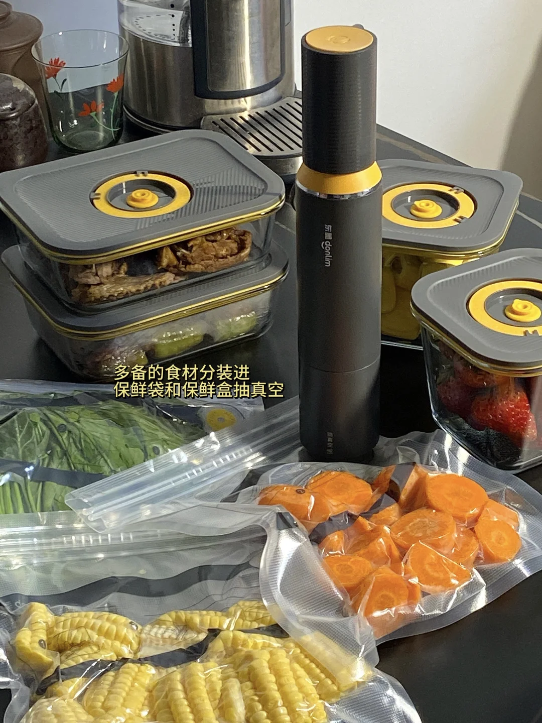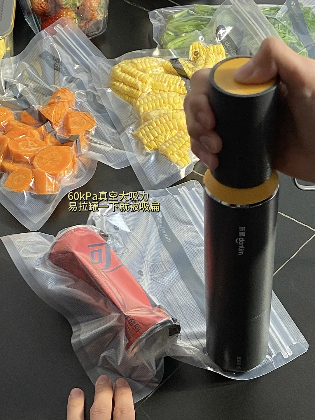 60kPa大吸力一键抽真空,锁住水分才是真保鲜,延长食物保鲜期,冰箱也彻底告别串味。定时设置功能也很贴心,再也不用担心食物过期浪费。平时切好的蔬菜,放进保鲜袋也能一键抽真空,分类备菜让厨房和冰箱都整洁多啦!