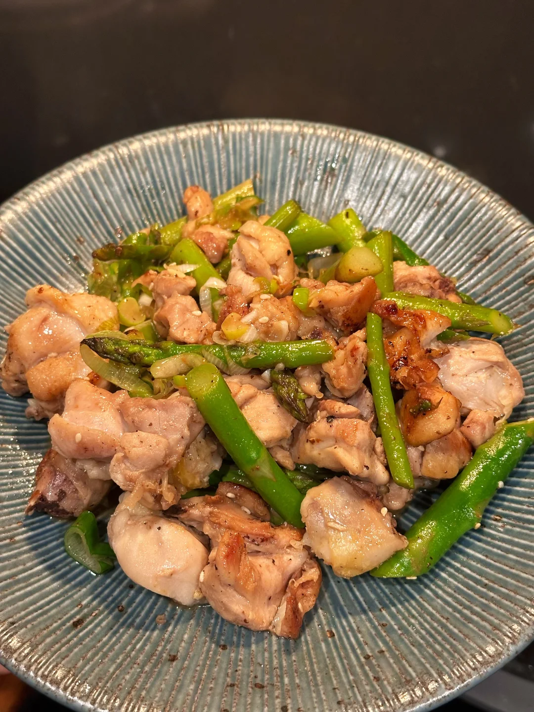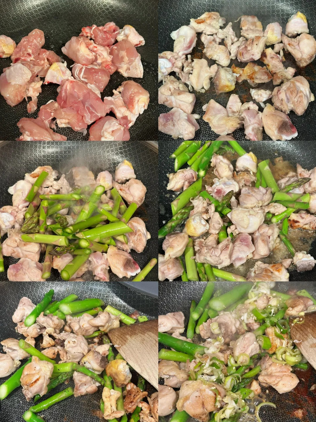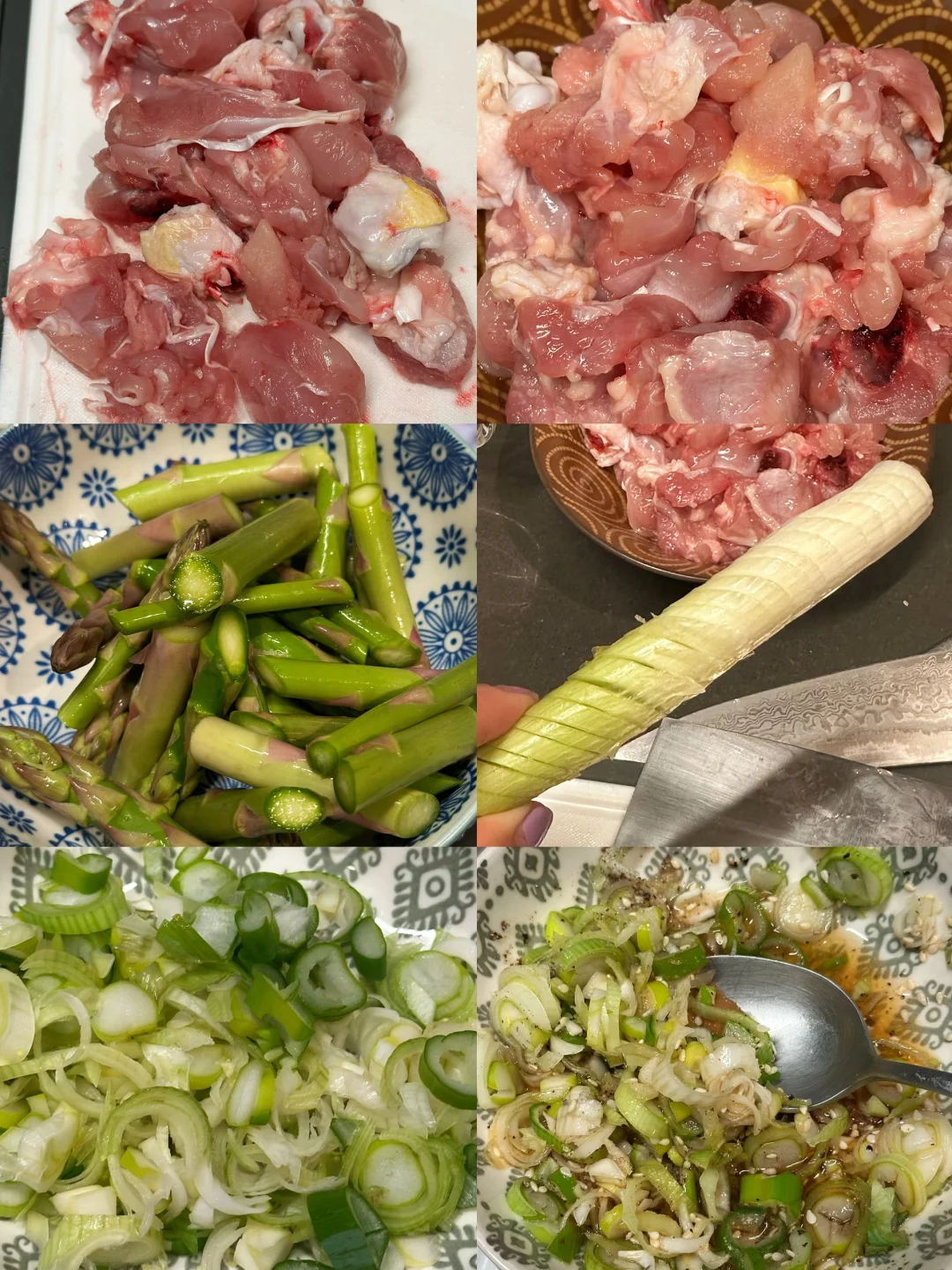 已经过够了这个漫长的冬天,刚刚感知到一点要回暖的迹象,我就忍不住想做些带点春日气息的清新美味了! 暂时把炖菜汤菜先放放,浓郁的牛羊肉留在冬季。初春的季节我决定用柠檬盐葱酱搭配鸡腿肉,香气清新,口感利落。还要加入碧绿的芦笋,样子就像春天里抽长的纸条,看着就爽口有食欲。 - 📒食材 鸡腿3只,米酒,盐,白胡椒粉,食用油,芦笋一把 盐葱酱:大葱一根,姜末一小勺,糖一小勺,dashi粉或鸡粉一小勺,味淋一大勺,芝麻油一小勺,白芝麻适量,ponzu一大勺,柠檬1/4个的汁 - 📖做法 鸡腿切块,我用带骨的感觉口感更好,你也可以用去骨鸡腿排方便切,加米酒,少许盐和白胡椒粉腌制十分钟; 大葱先斜切不切断,再切末。和其他盐葱酱的食材混合,盐葱酱就完成了; 锅里喷油,放上鸡腿先两面煎上色,再加入芦笋翻炒,淋入米酒,盖上锅盖小火焖三分钟; 揭开锅盖,倒入大部分的盐葱酱,快速翻炒均匀后出锅; 顶上再舀余下的盐葱酱,点缀柠檬片,就可以享用啦! - 虽然这道菜很清淡,也挺健康,但相信我,完全不会寡淡,调味很丰富,配米饭或者夹在面包里也完全没问题! -