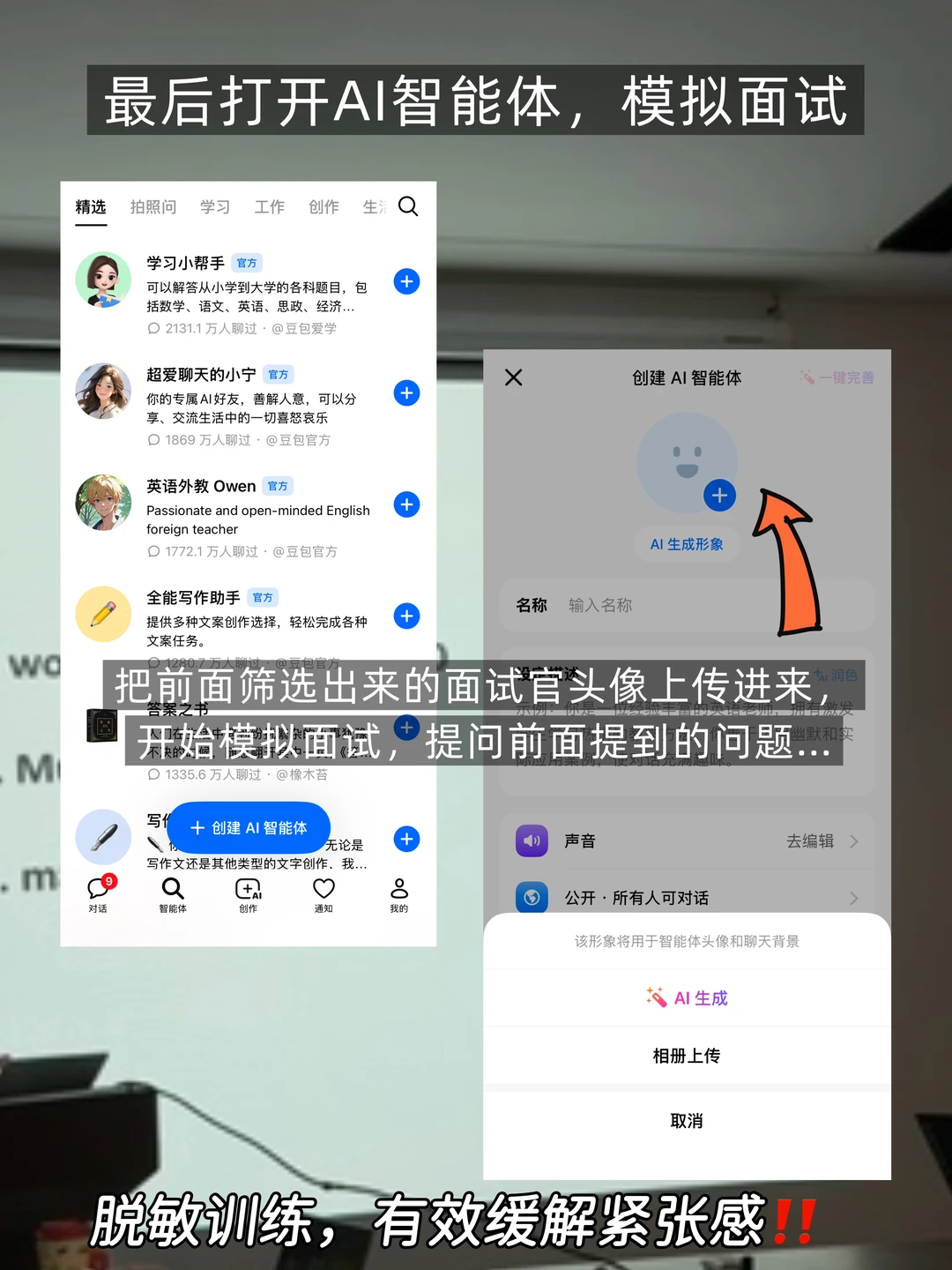 也可以把导师照片给豆姐,充当面试官模拟刚刚总结出的那些高频问答,这样训练几轮,就基本不怎么紧张了,起码不会上场以后支支吾吾,抠手指。[集美R]