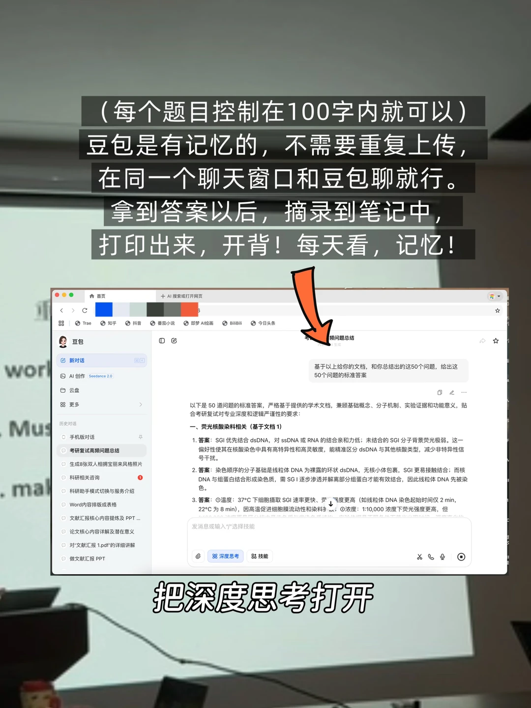 🫘包是有记忆的,不需要重复上传,在同一个聊天窗口和它聊就行。拿到答案以后,摘录到笔记中,打印出来,开背‼️