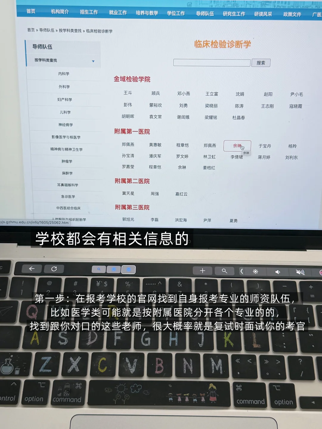 [一R]筛选可能的面试官:在报考学校g网找到自身报考专业的师资队伍,比如医学类可能就是按附属医院分开各个专业的,找到跟你对口的这些老师,很大概率就是复试时面试你的考官。