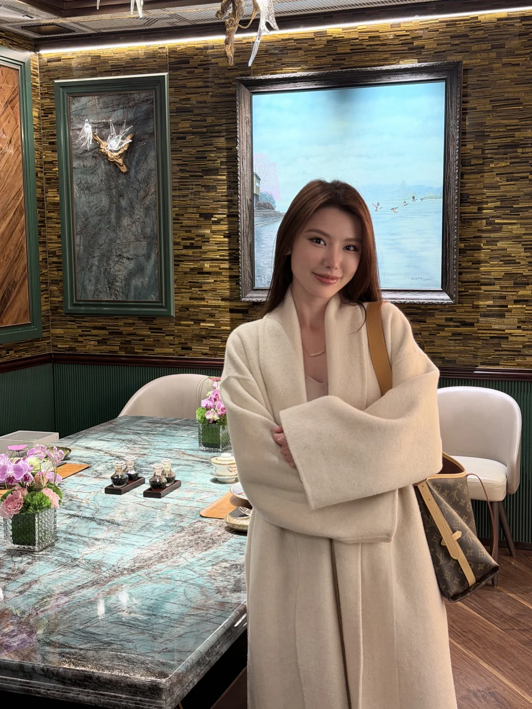 中式木雕与油画相映成趣,连墙面和餐桌都透着低调奢华的质感,随手拍都是大片📸