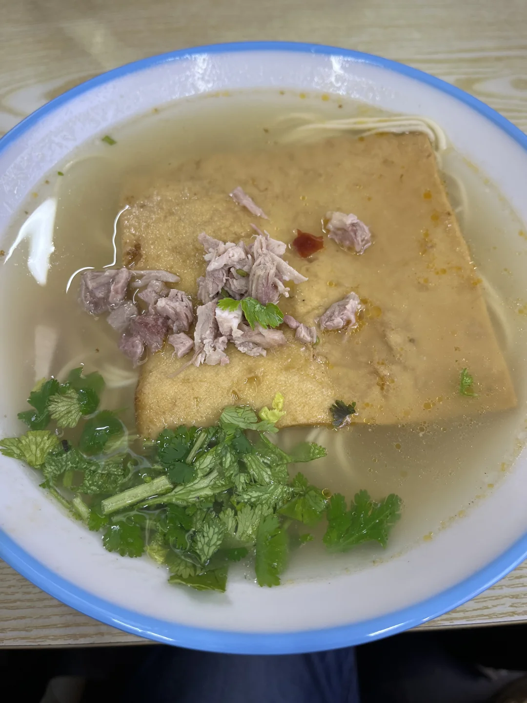 肘汤,汤底鲜美,大骨汤熬制,与市面上的兰州拉面路数一致,区别是大师傅拉面两只手抻几遍,高高低低,弯弯绕绕,煮好面捞出入碗浇汤后,最后会给一小勺肘子颗粒,店家看客人,要不要葱、芫荽、辣子,出餐很简单。也有凉菜可选择,我对面的客官见我自己一人,主动询问我是否有伴儿,然后两个不认识的汉子拼了桌,他后来点的是鸡丝凉面与凉菜。凉菜吃个差不多,鸡丝凉面也好了,搅拌几下,即埋头吃面。