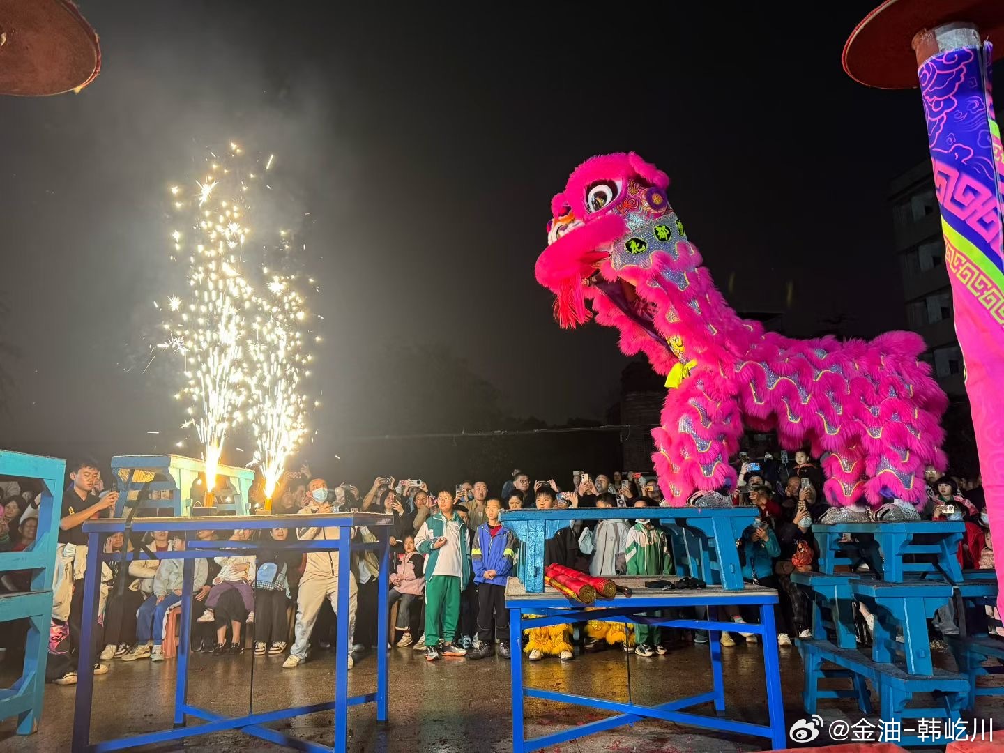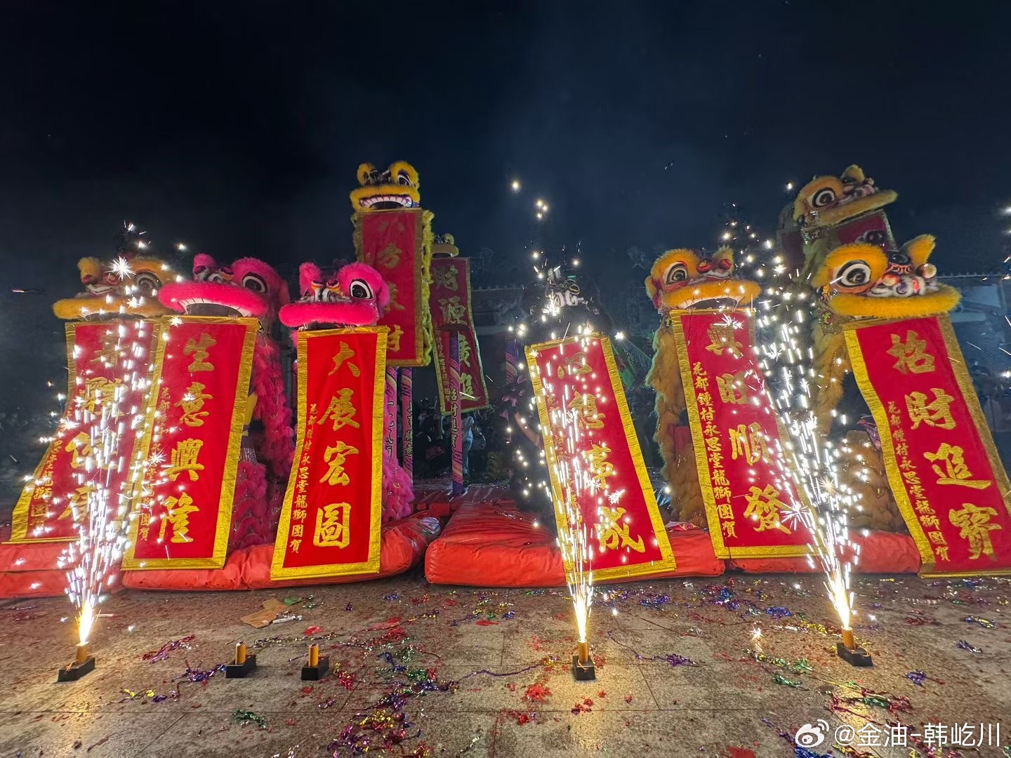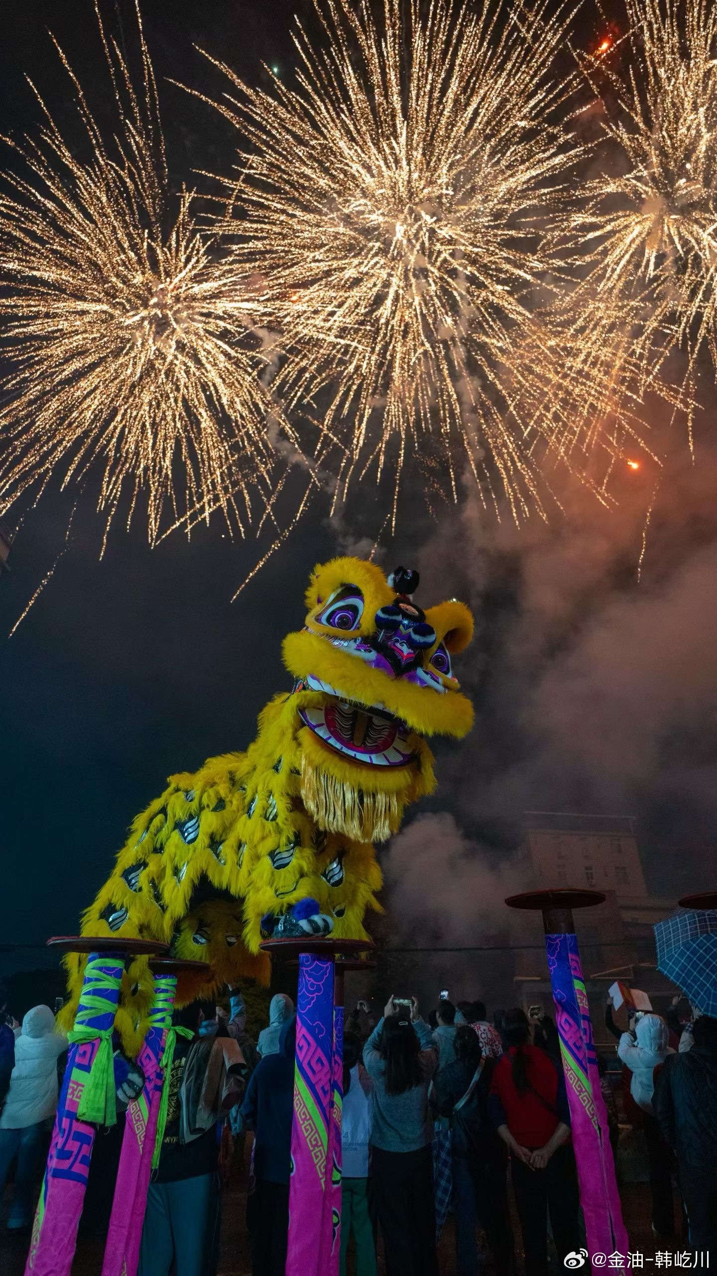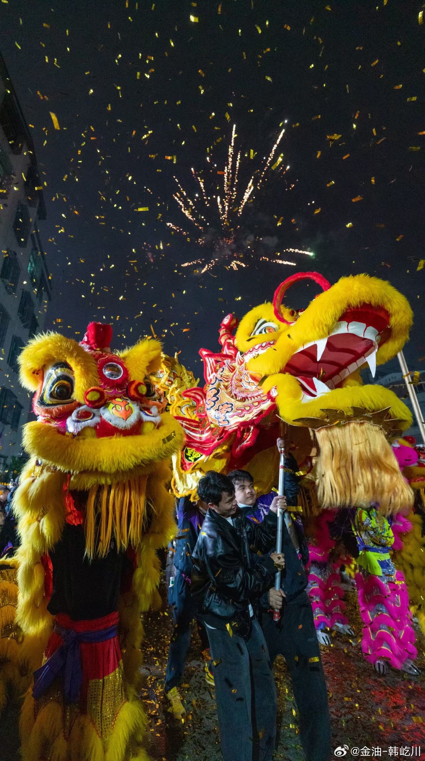 瑞狮踏歌辞旧岁,火树银花不夜天回来最后还看了场演出,这年过的很精彩 舞狮周末愉快