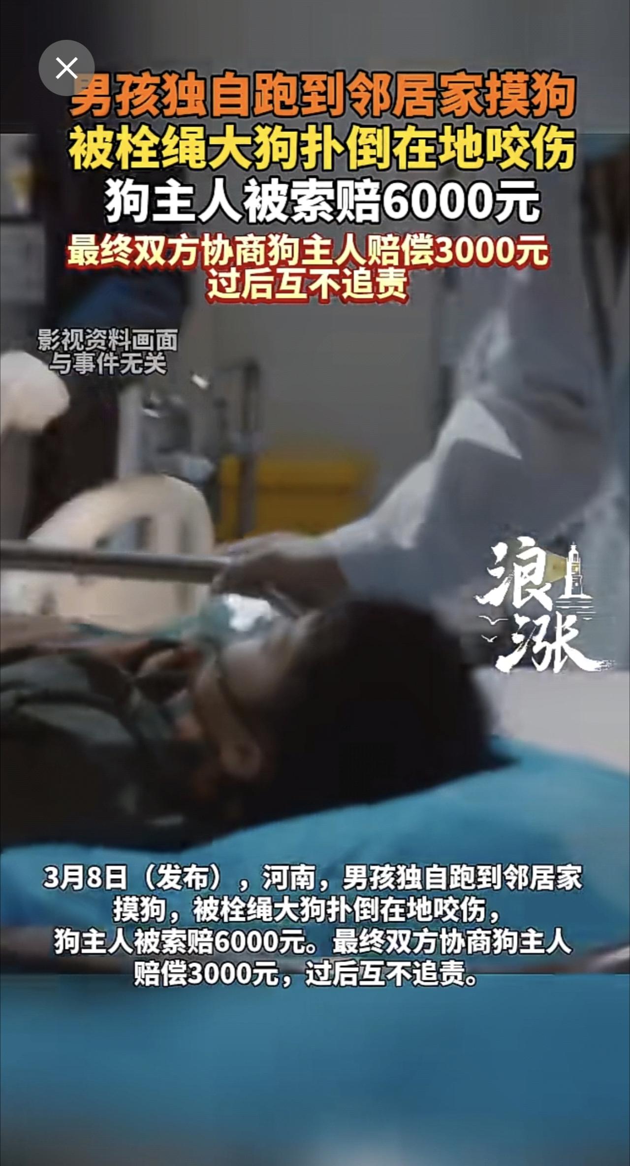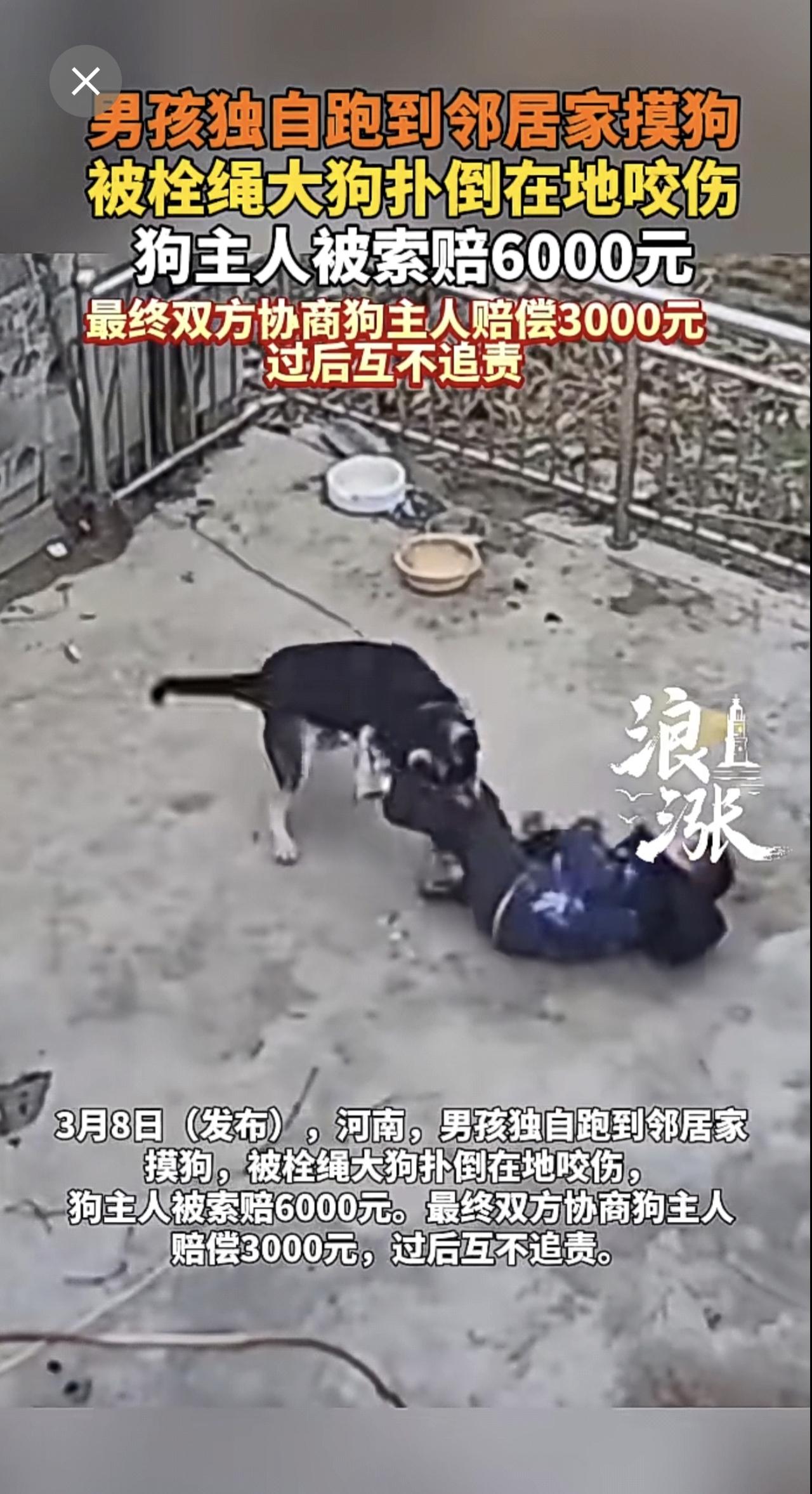 男孩独自跑到邻居家摸狗 被栓绳大狗扑倒在地咬伤 狗主人被索赔6000元(青岛新闻网)
