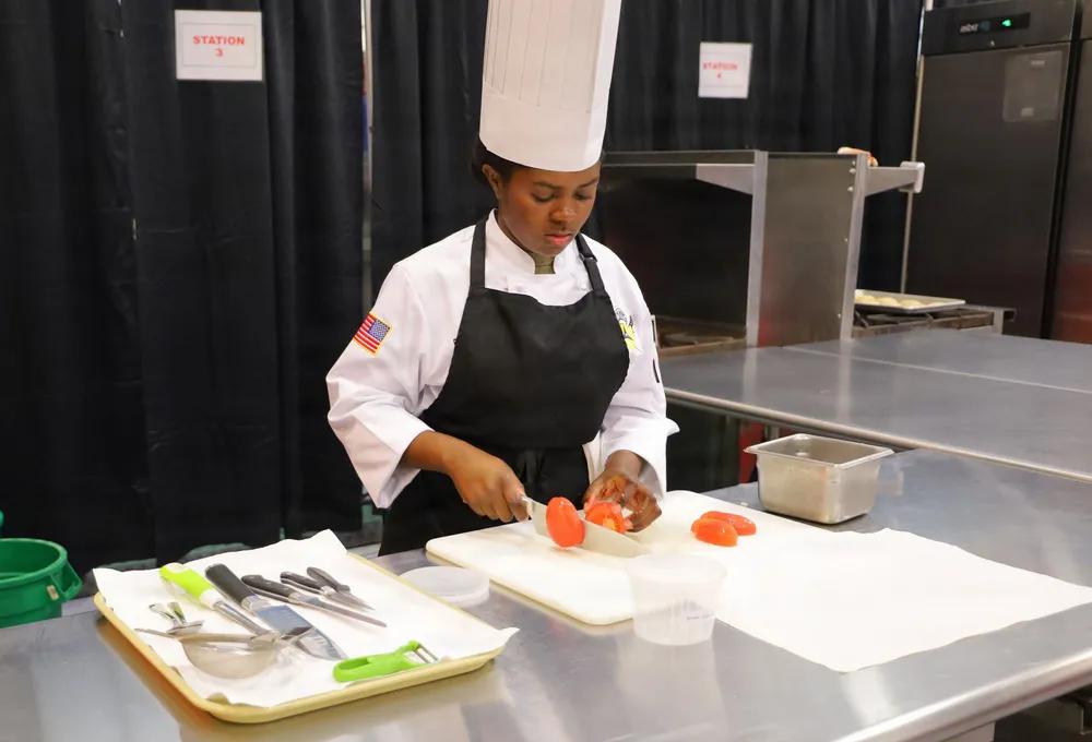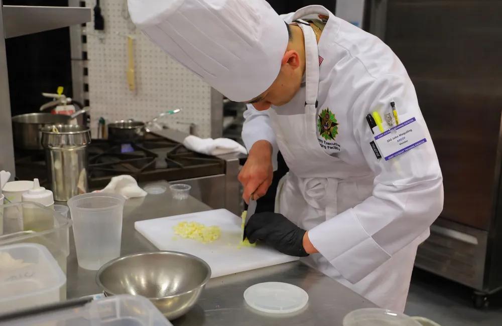 看这些美军军营里的厨子刀功也是一般般。 2026年2月27日,在美国弗吉尼亚州军事基地李堡举行第50届联合烹饪培训活动于2月27日在麦克劳克林健身中心开始,持续至3月4日。 这次活动旨在提升我们武装部队的战备状态。参赛军人磨练烹饪艺术技能,提升部队餐饮服务质量,使他们能更好地履行家庭和战术环境下的职责。该演习由联合烹饪培训中心管理,是北美最大的美国烹饪联合会认可比赛,展示了来自全球五个军种的140多名军人厨师以及法国、英国和德国三支国际队伍的才华。