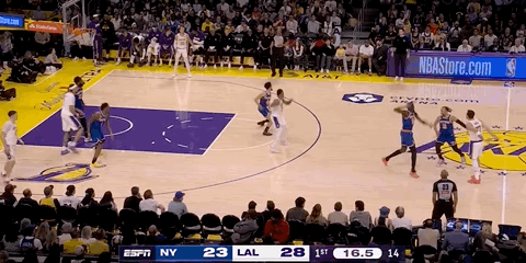 第一节结束,湖人31-23尼克斯。尼克斯vs湖人 东契奇12分2篮板3助攻,里夫