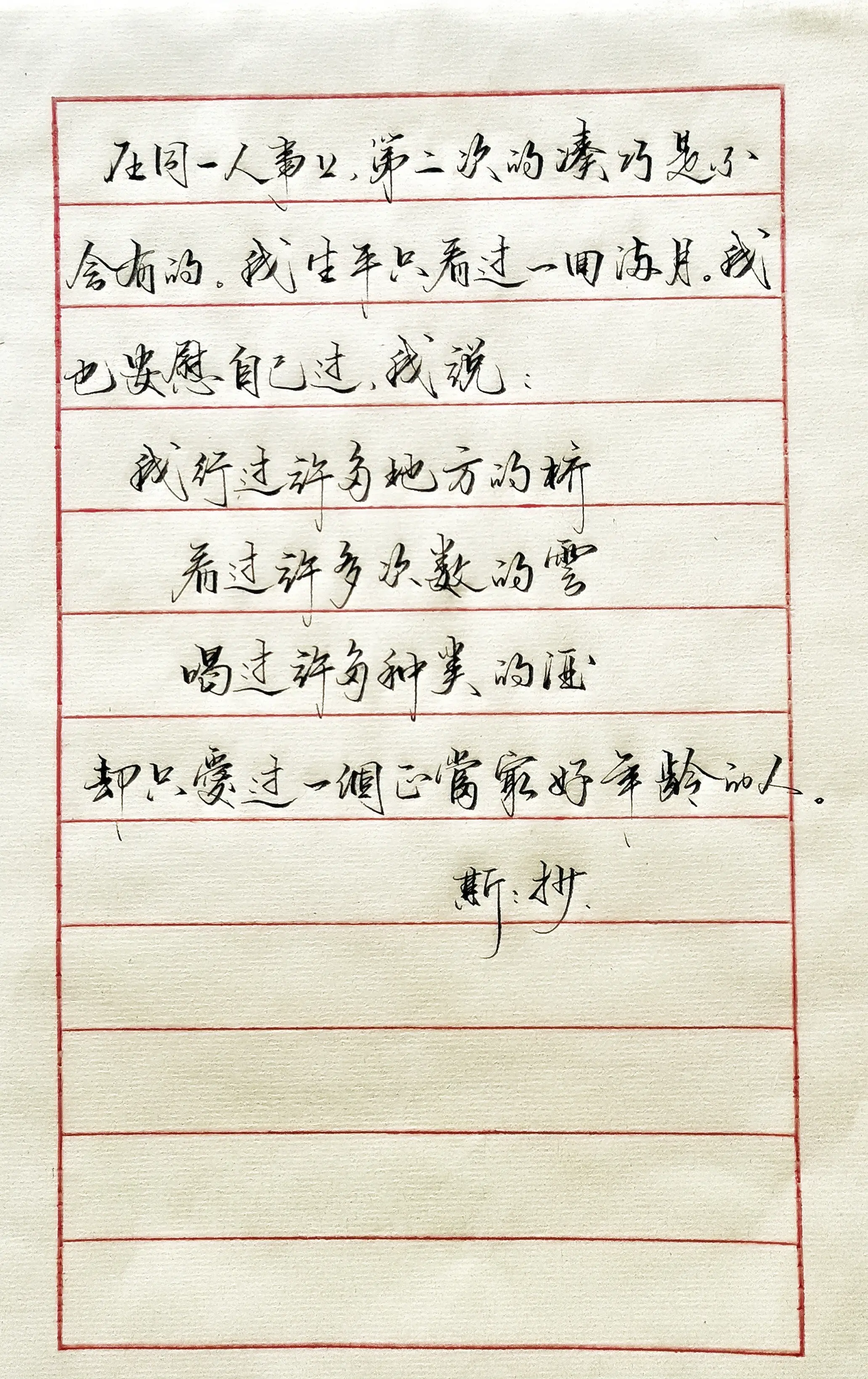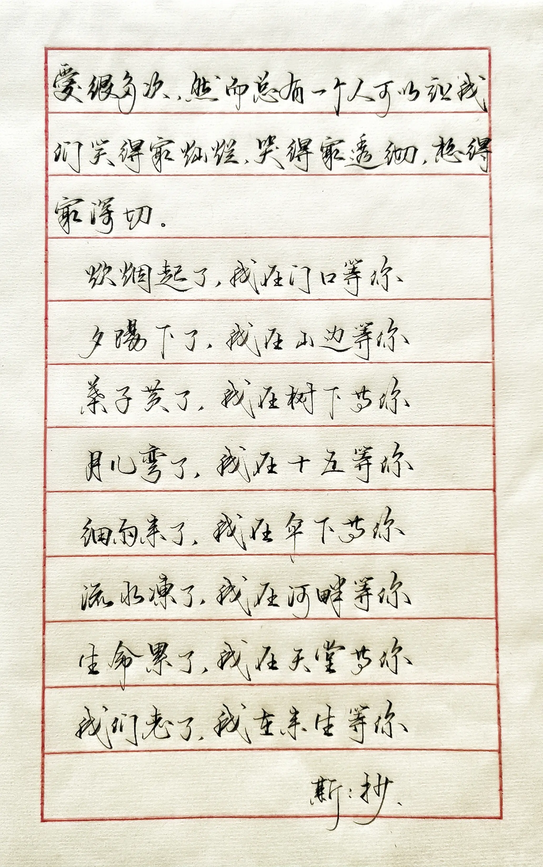 手稿分享 写字 现代诗 情感文字 硬笔宣纸
