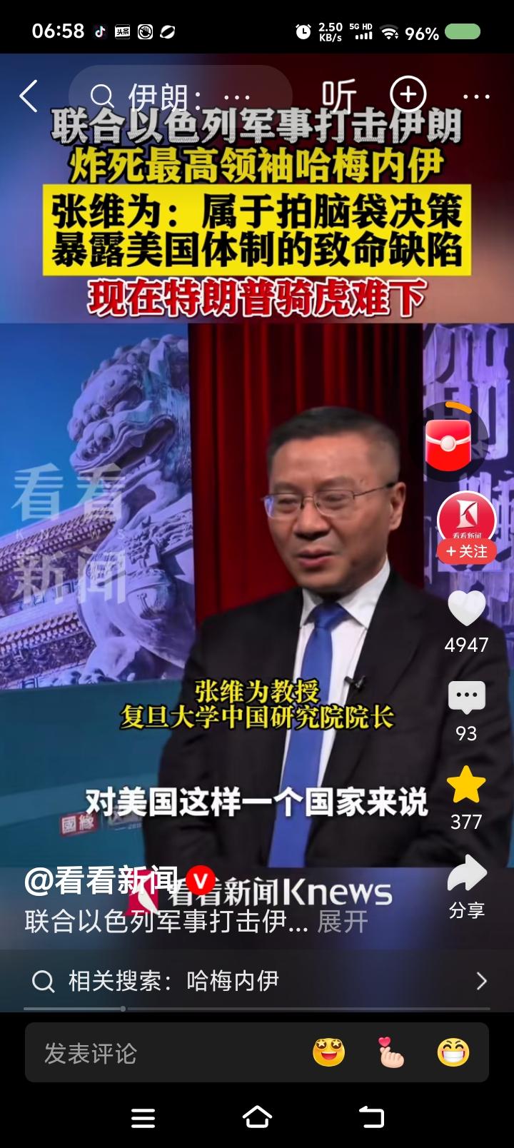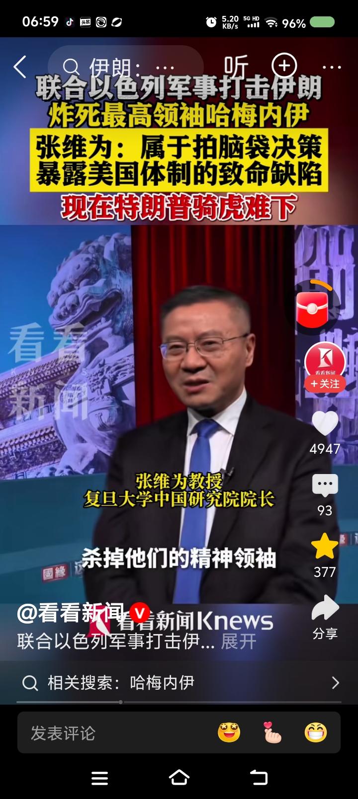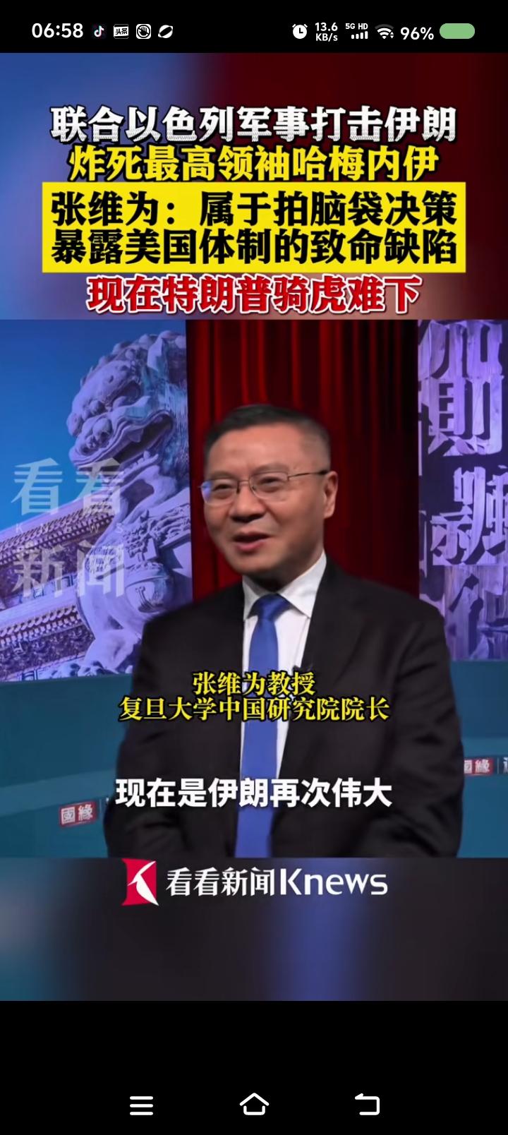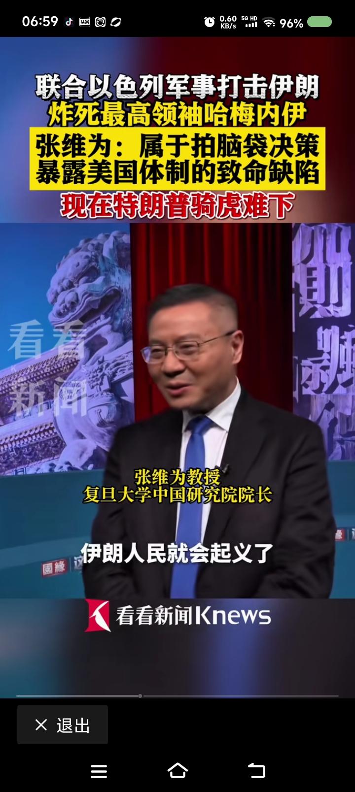 美国的算盘—— 据报道,张维为教授说:“这场战争不会使美国再次伟大,会使伊朗再次伟大。美国没有清晰的战略,拍拍脑袋的决策,今天这个表述,明天那个表述,后天又变了。美国以为杀死伊朗最高领袖,对方指挥会瘫痪,人民会起义,颜色革命就会成功……” 点评: 《孙子兵法》:“兵者,国之大事,死生之地,存亡之道,不可不察也。” 特朗普说:“打仗,雇几个人的事,是死是活看上帝,输赢不重要,反正我不去。国会算什么?”