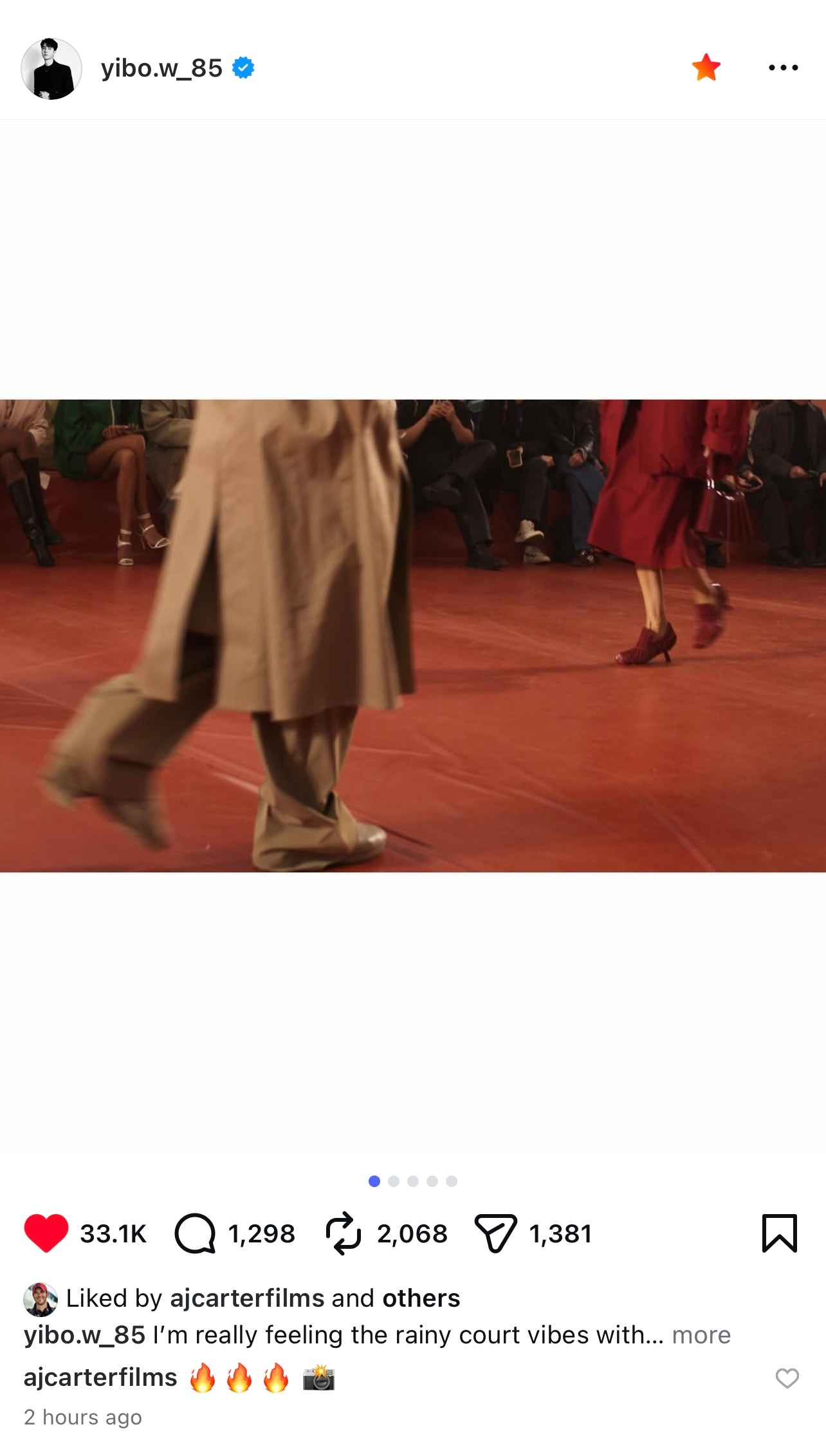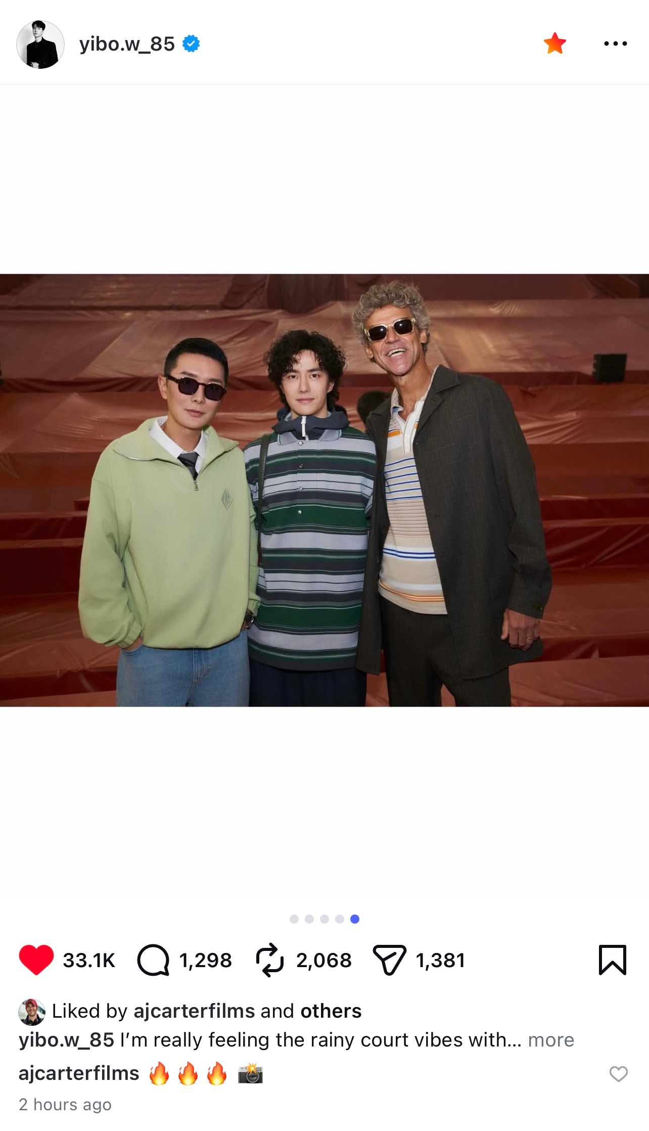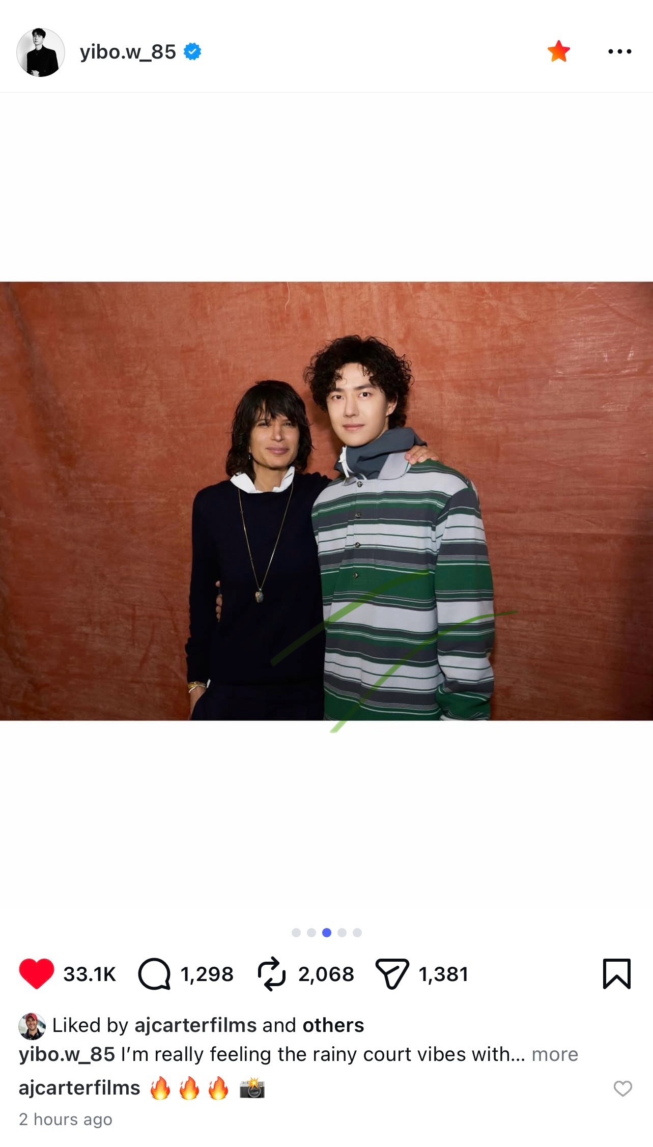 ins 更新 网页链接大家去给博哥多点👍互动呀王一博巴黎时装周💚lacos