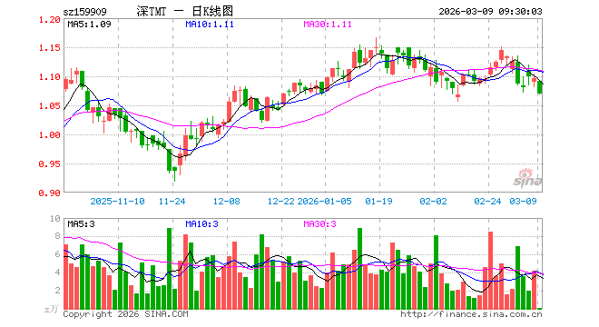 3月9日,TMT50ETF招商(159909)开盘跌0.46%,报1.091元。TMT50ETF招商(159909)重仓股方面,中际旭创开盘跌4.65%,新易盛跌5.47%,立讯精密跌2.18%,北方华创跌3.73%,胜宏科技跌3.01%,京东方A跌1.37%,中兴通讯跌3.74%,海康威视跌1.48%,东山精密跌5.40%,沪电股份跌3.20%。