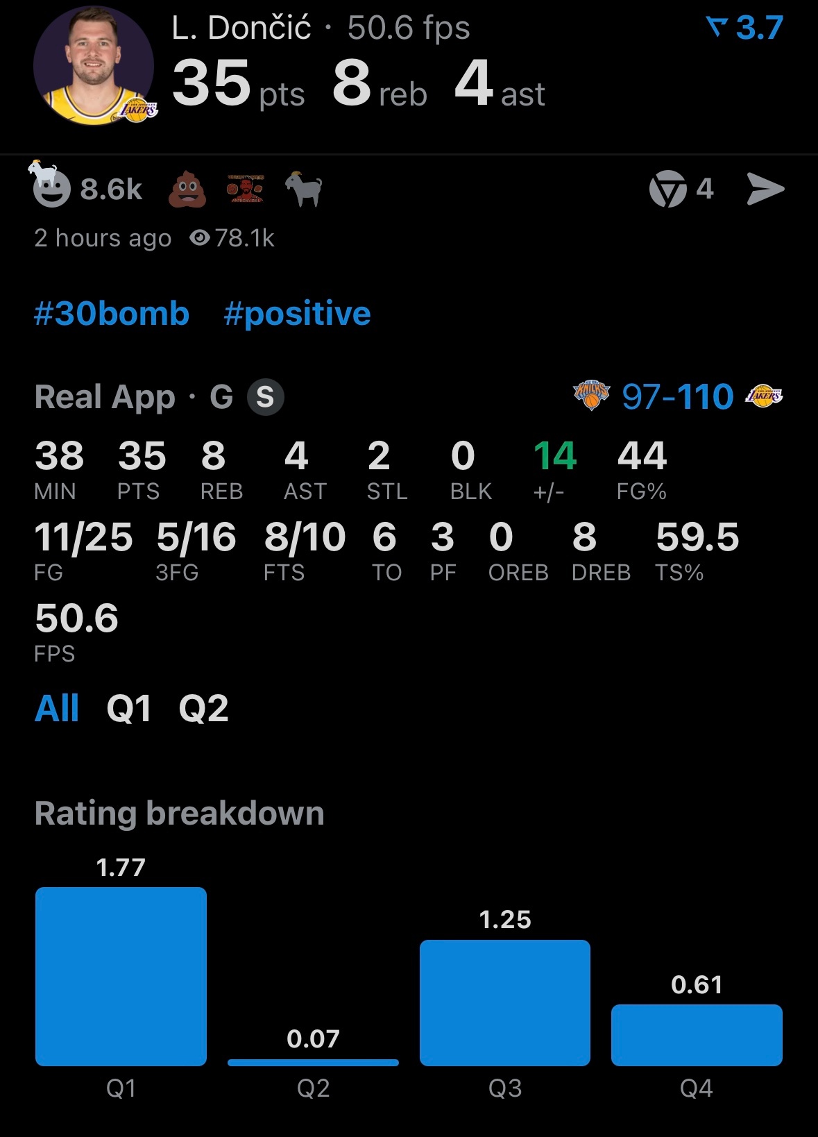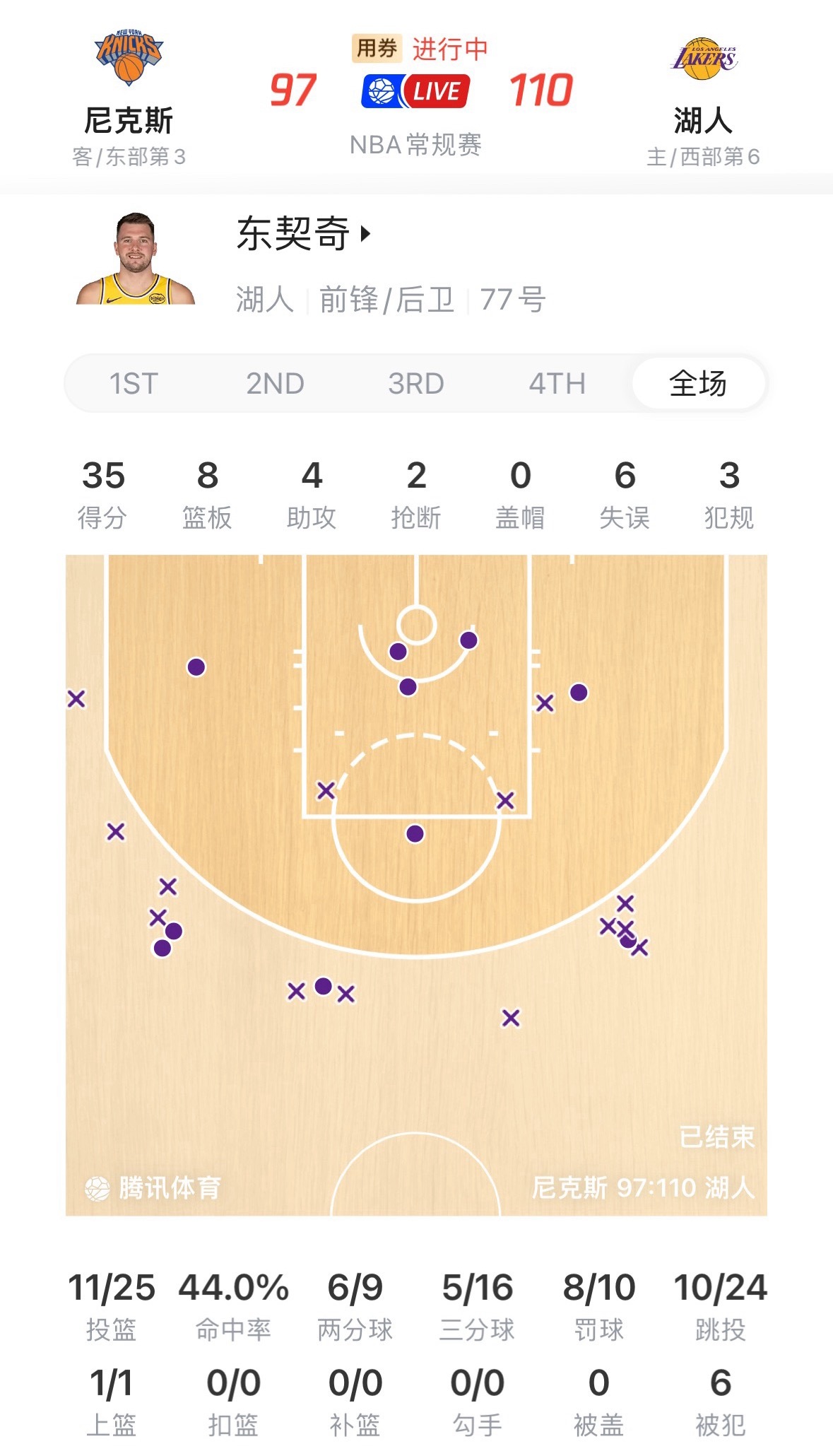 湖人双核今日发挥:里夫斯25分4板5助攻,投篮16中8,三分6中3,7罚6中。东契奇35分8板4助攻,投篮25中11,三分16中5,10罚8中。