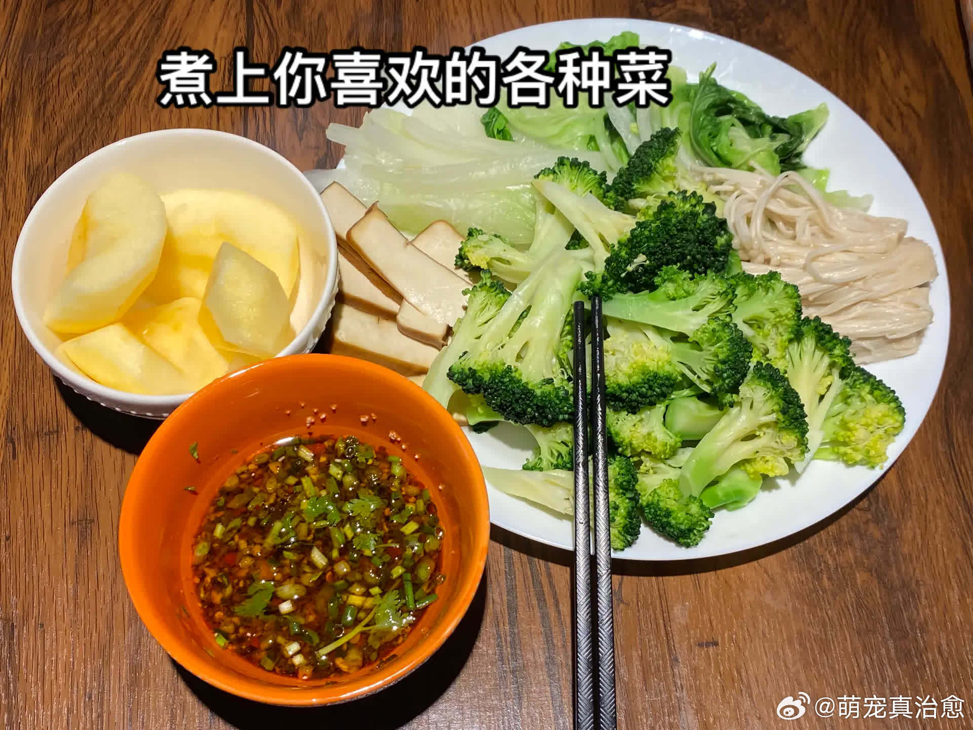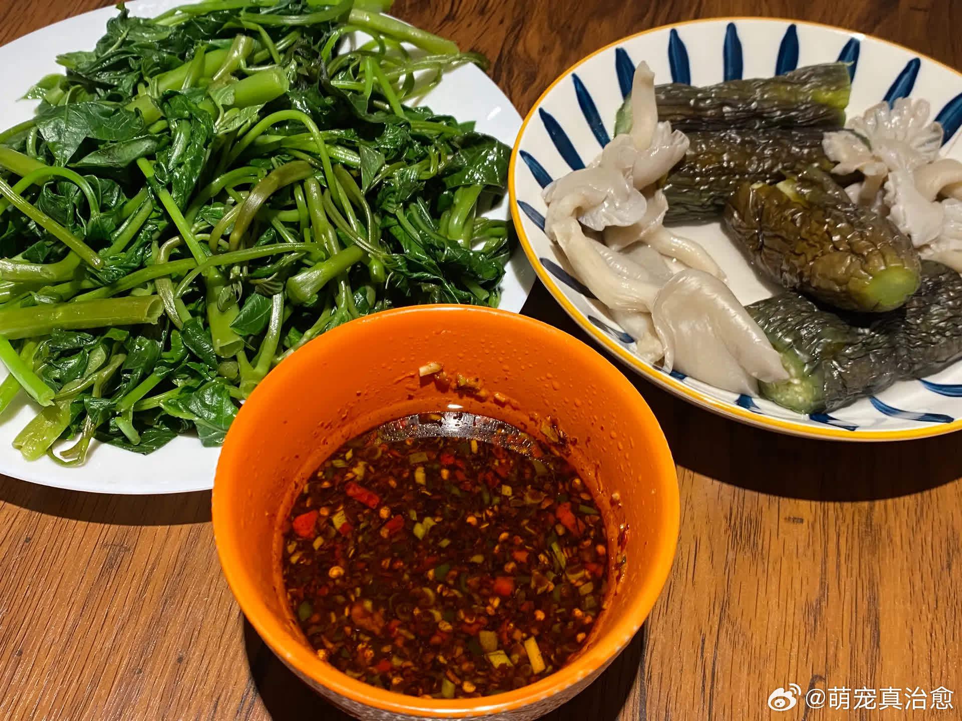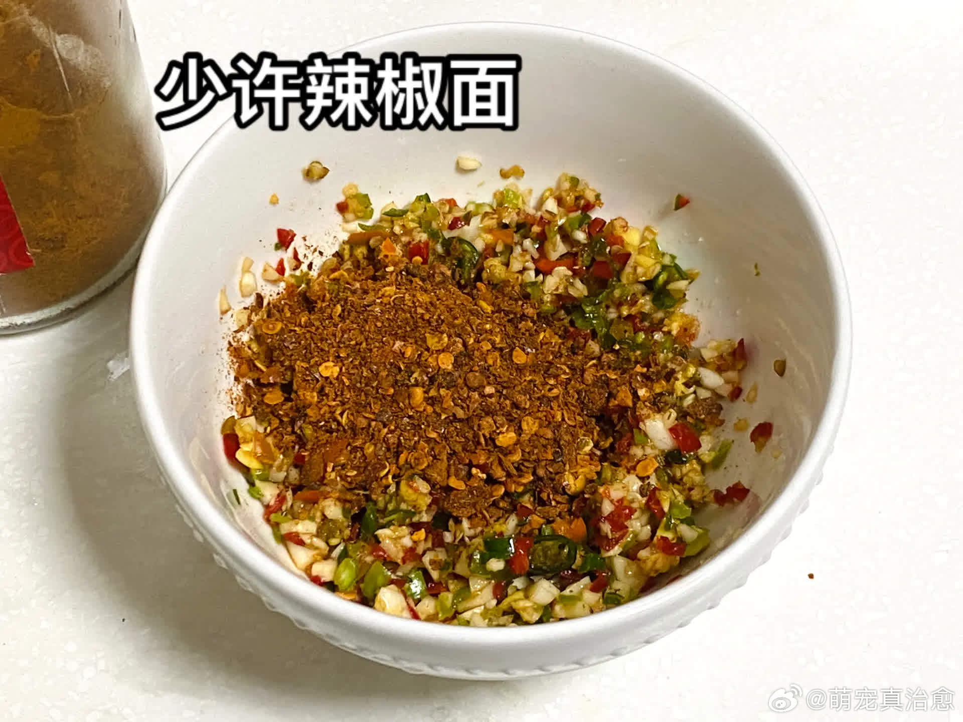 你们要的万能蘸水教程来了。封区这几天我一直吃的这个蘸水很多人想学:小米辣和条椒颜色红绿都可以辣椒面可以买现成的我是家里自己做的寄来的煮蔬菜的时候可以在水里加几滴油绿油油的藤椒油是灵魂 花椒油也可以 都没有也将就还是好吃萌宠宠物