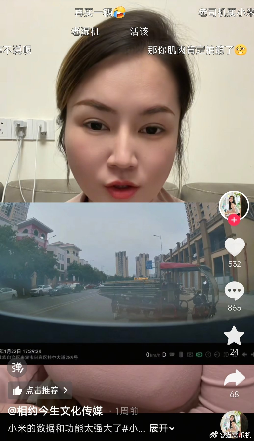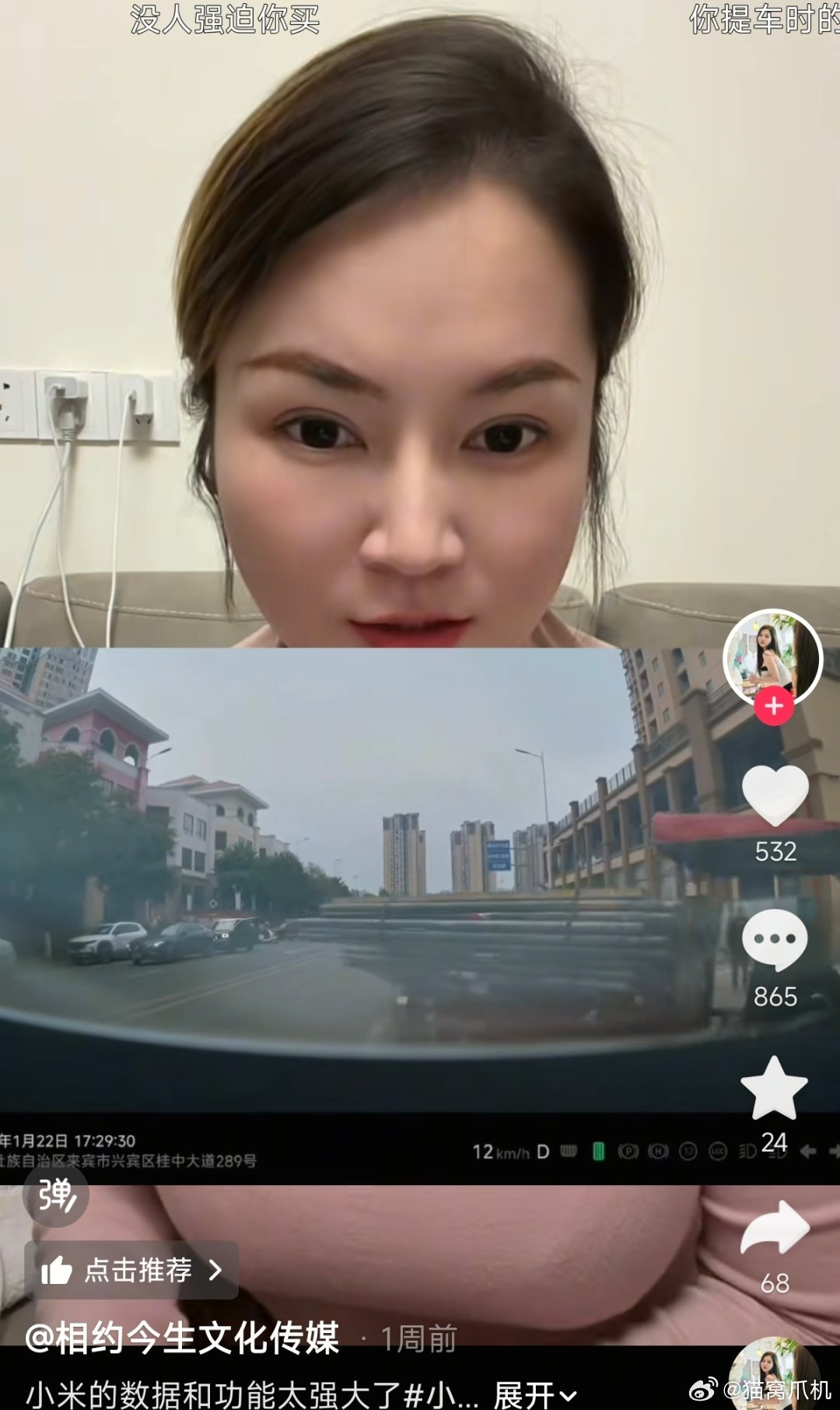 不过她展示的行车记录仪里,显示他踩的是电门。另外,电门和刹车是两套系统,视频里显示这位女士踩了“刹车”之后,车子仍然在加速,这就比较神奇了。而且到后面电门刹车又分别踩了几下,还把辅助泊车给按出来了。