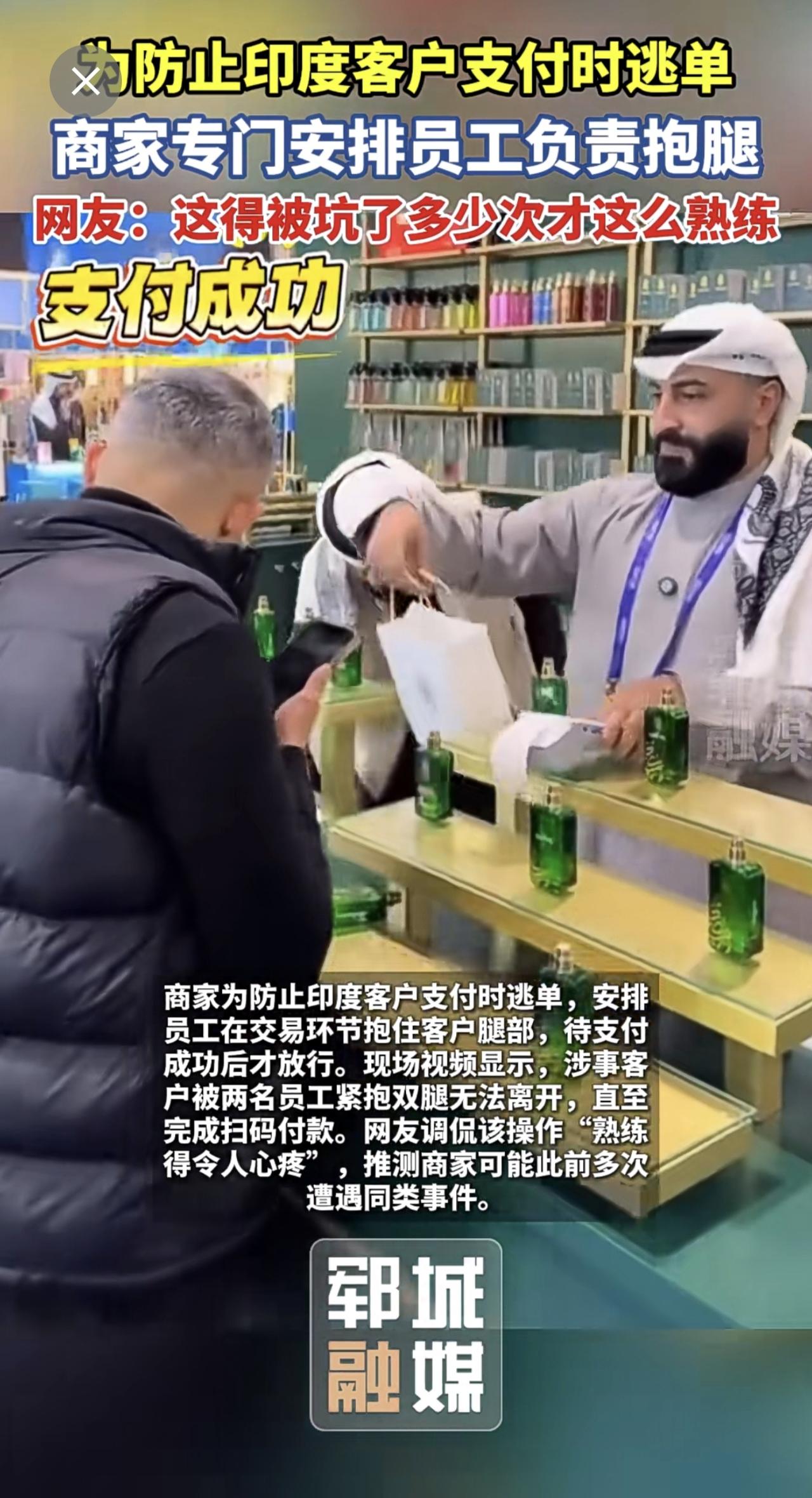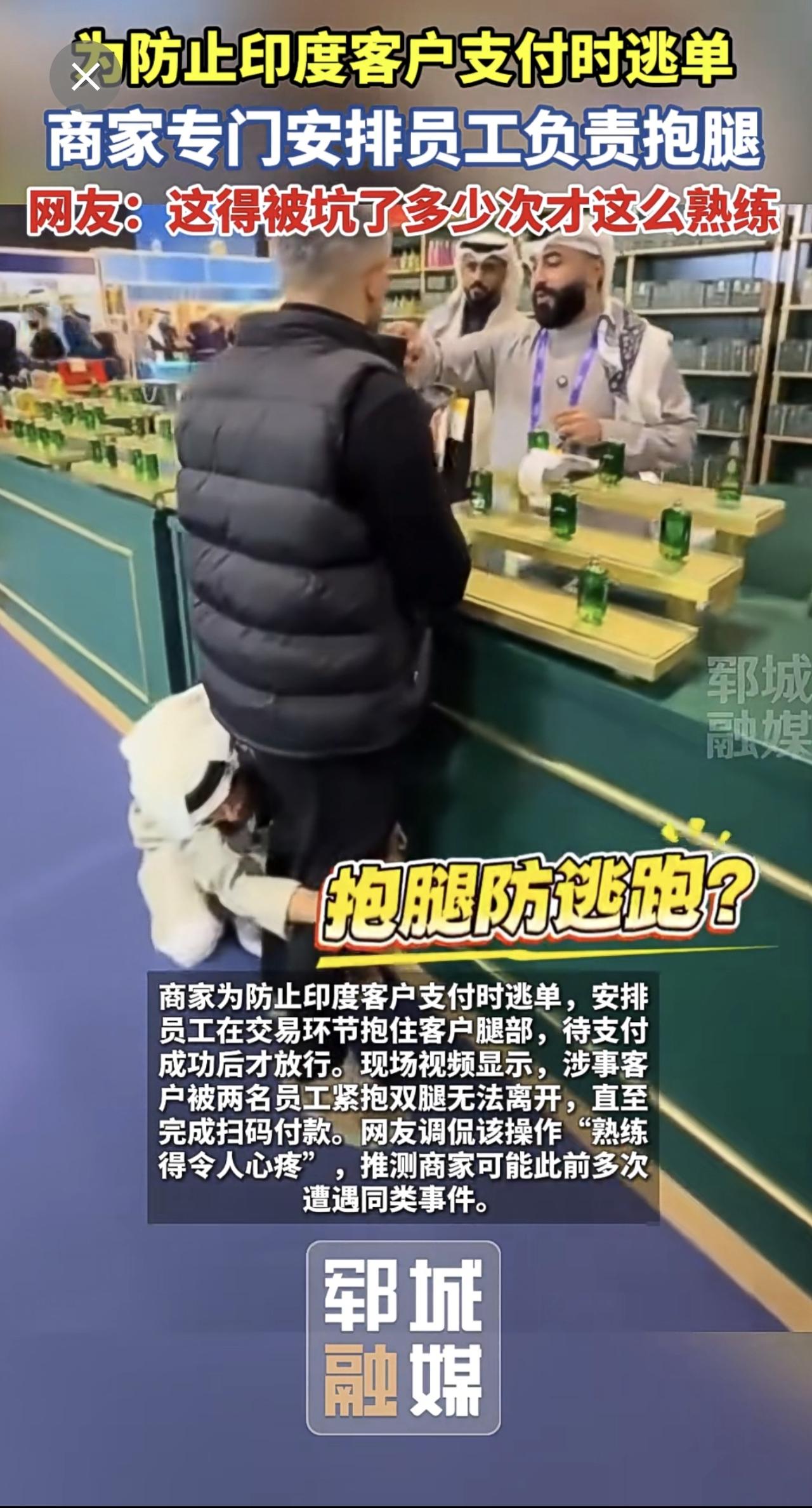 为防止印度客户支付时逃单 商家专门安排员工负责抱腿[捂脸]