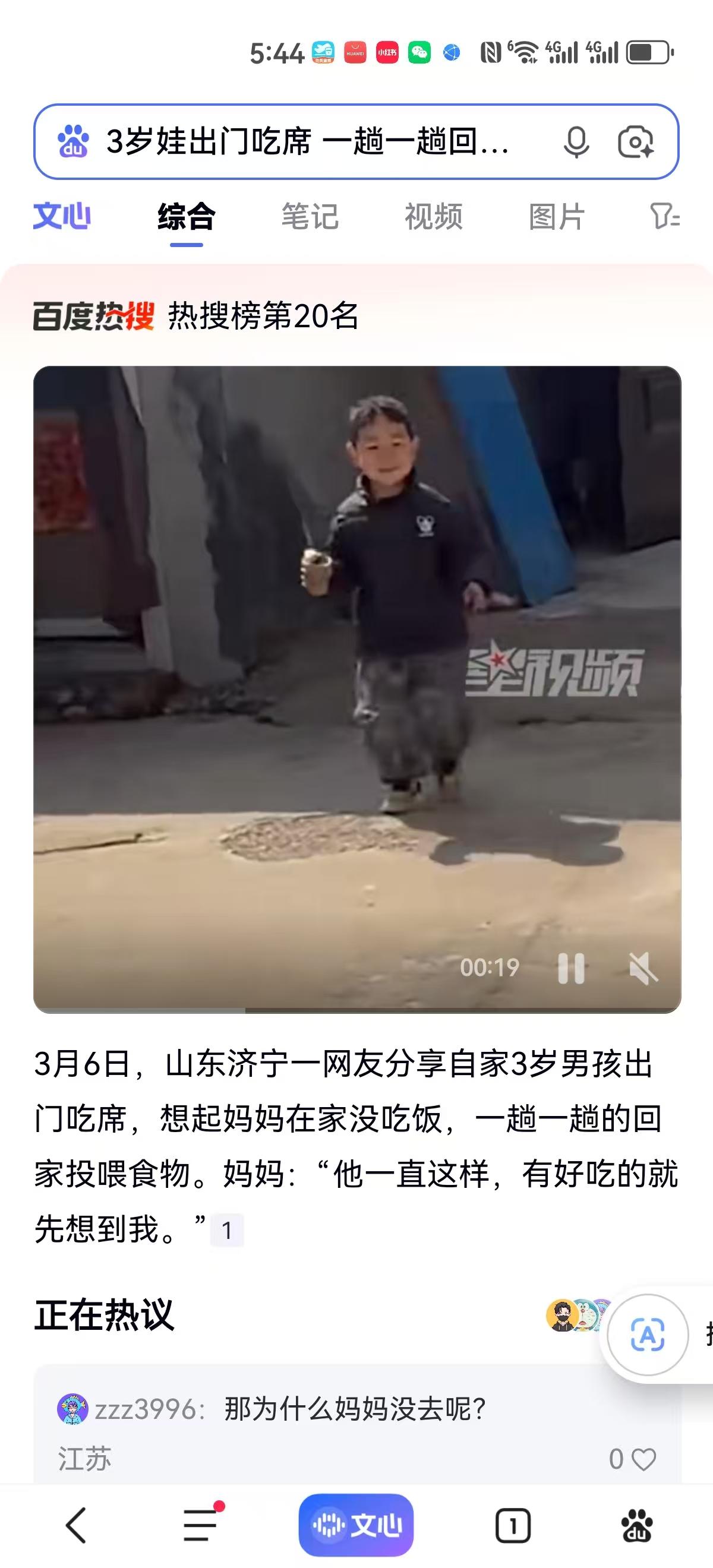 3岁男孩“吃席”自带任务,一趟趟往返只为投喂妈妈,网友:这哪里是孩子,分明是来报恩的 3月6日,山东济宁的一场农村宴席上,发生了让人眼眶温热的一幕。没有豪华的排场,也没有什么惊天动地的誓言,主角只是一个年仅3岁的小男孩。在这个大多数孩子还需要追着喂饭的年纪,他却用一种近乎本能的行动,给在场的成年人上了一堂关于“爱与分享”的课。 事情发生在济宁某地的露天宴席现场。按理说,3岁的孩子正是贪吃贪玩的年纪,面对琳琅满目的美食,早就该把心思全放在填饱肚子上。可这个小家伙不一样,他坐在席间,心里却还装着一个人——家里没来吃席的妈妈。 现场目击者拍摄的视频记录下了这珍贵的片段。小男孩个头不高,手里却紧紧攥着吃食,穿梭在人群和回家的路上。他不是吃不完打包,而是专门挑了好吃的,一趟又一趟地往家里跑。这一来一回的路程对大人来说或许不算什么,但对一个3岁的孩子来说,这得是多远的距离?可他没喊累,也没嫌麻烦,就像个恪尽职守的“外卖员”,只为把热乎的美味送到妈妈嘴边。 面对镜头,孩子的妈妈王女士语气里满是欣慰与感动。她说:“他一直这样,有好吃的就先想到我。”简简单单的一句话,道出了这并非偶然的作秀,而是长期养成的习惯。王女士还提到,当时自己在家没去吃席,孩子记挂着,就一趟趟回家投喂。这种下意识的反应,恰恰是一个家庭教养最真实的写照。 这段视频发布后,迅速在网络上引发了热议,短短时间内就收获了数百个点赞,评论区更是暖意融融。 山西的网友“哆啦嘿梦6v”感慨道:“这种孝顺是装不出来的。”确实,3岁的孩子还不懂得什么叫“人设”,也不懂什么叫“表演”,他们的行为完全出自天性。这种天性里,藏着对母亲最纯粹的依恋和爱意。 陕西的网友“一泓yhqq”则直言:“来报恩的!”这句略带迷信色彩的评价,却成了无数家长对别人家孩子最艳羡的赞美。在“熊孩子”新闻屡见不报的今天,这样一个懂事、贴心的小暖男,简直就是很多父母梦寐以求的“理想型”。 不过,在一片赞美声中,也有理性的声音提出了疑问。江苏网友“zzz3996”问出了不少人心中的疑惑:“那为什么妈妈没去呢?”这其实触及了一个更现实的家庭生活背景。在农村,办红白喜事往往人多事杂,总得有人在家看家望门,或者处理其他琐碎事务。妈妈没去,或许是因为忙碌,或许是因为其他原因,但这恰恰给了孩子一个表达爱的机会。如果妈妈也在席间,孩子的这份心思可能就被淹没了,正是这种“缺席”,成就了这段佳话。 我们常说,父母是孩子最好的老师。一个3岁的孩子能做出如此举动,背后必定有一个充满爱的家庭环境。孩子是父母的镜子,他之所以“有好吃的先想到妈妈”,大概率是因为在日常生活中,父母也是这样对待长辈、对待他人的。这种爱的教育,不是书本上死记硬背的教条,而是耳濡目染的传承。 在这个快节奏的时代,我们习惯了用金钱衡量礼物的价值,却往往忽略了这种最原始、最质朴的关怀。孩子手里拿的可能只是一块肉、一个丸子,价值几块钱,但他那份想与人分享的心意,却是千金难换。 这场发生在3月6日济宁的暖心小事,不仅让我们看到了一个“报恩”的孩子,更让我们反思家庭教育的真谛。最好的教育,不是报了多少辅导班,也不是买了多少昂贵的玩具,而是在日常的一饭一蔬间,教会孩子心中有他人。这大概就是这个小男孩带给我们最大的启示。 以上内容仅供参考和借鉴