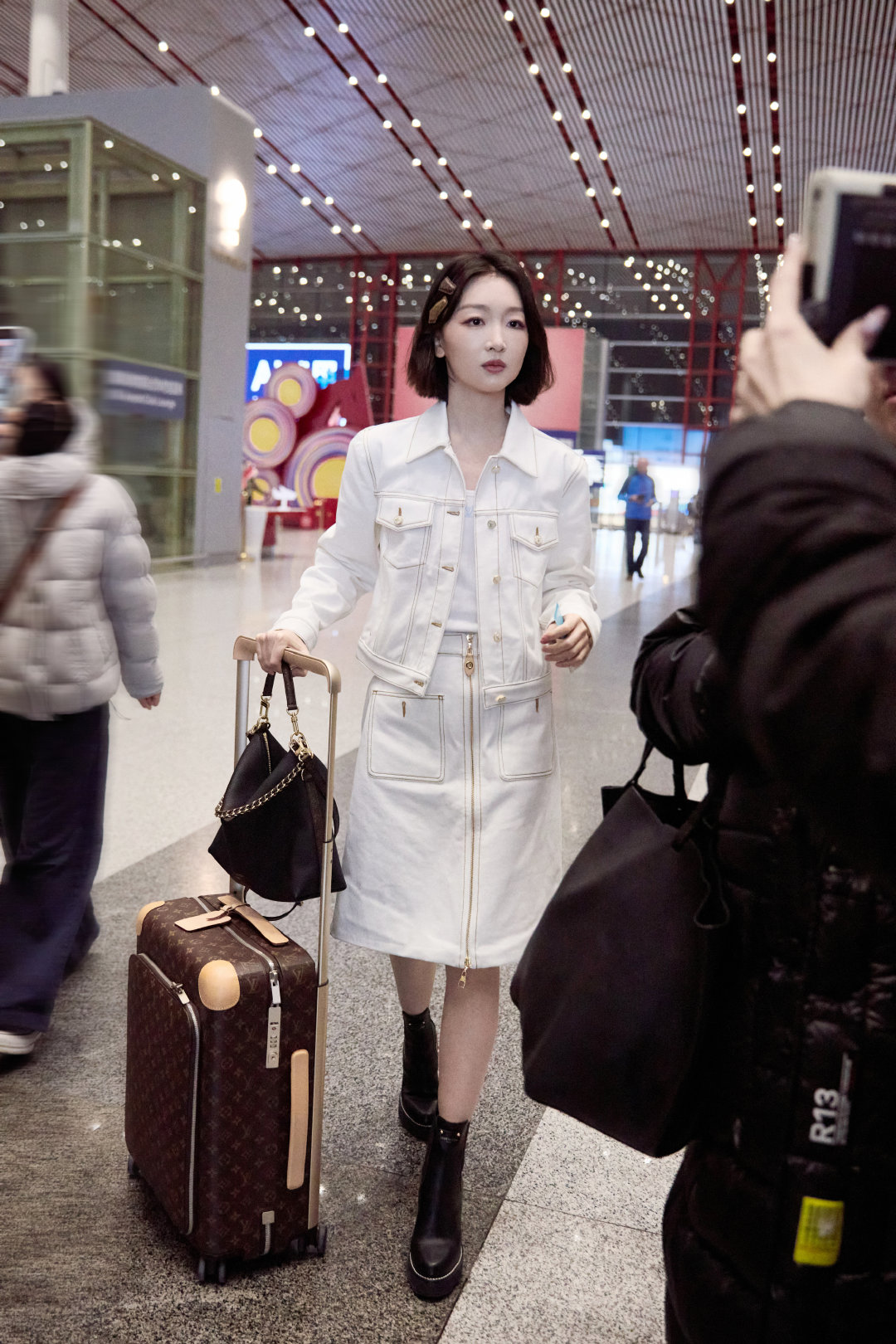 周冬雨出发巴黎时装周 冬叔出发巴黎啦!浅色牛仔裙装清爽又利落,搭Multipas