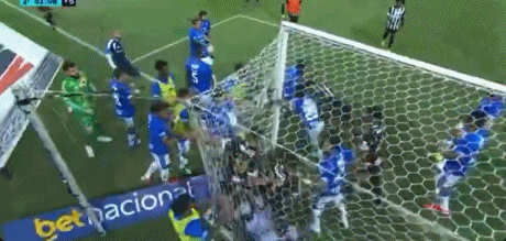 全员大乱斗!巴西米内罗州锦标赛克鲁塞罗1-0米内罗竞技比赛中,双方球员爆发大规模