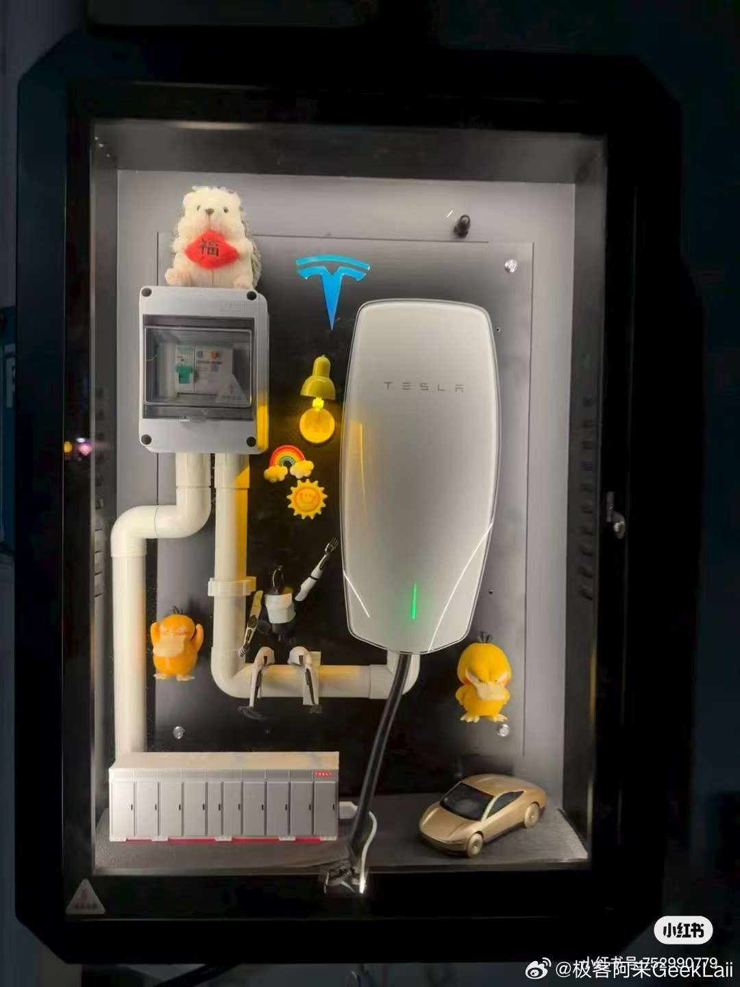 这位特友的充电桩箱子装修的蛮好看的应该还用上了特斯拉最新周边(图2)