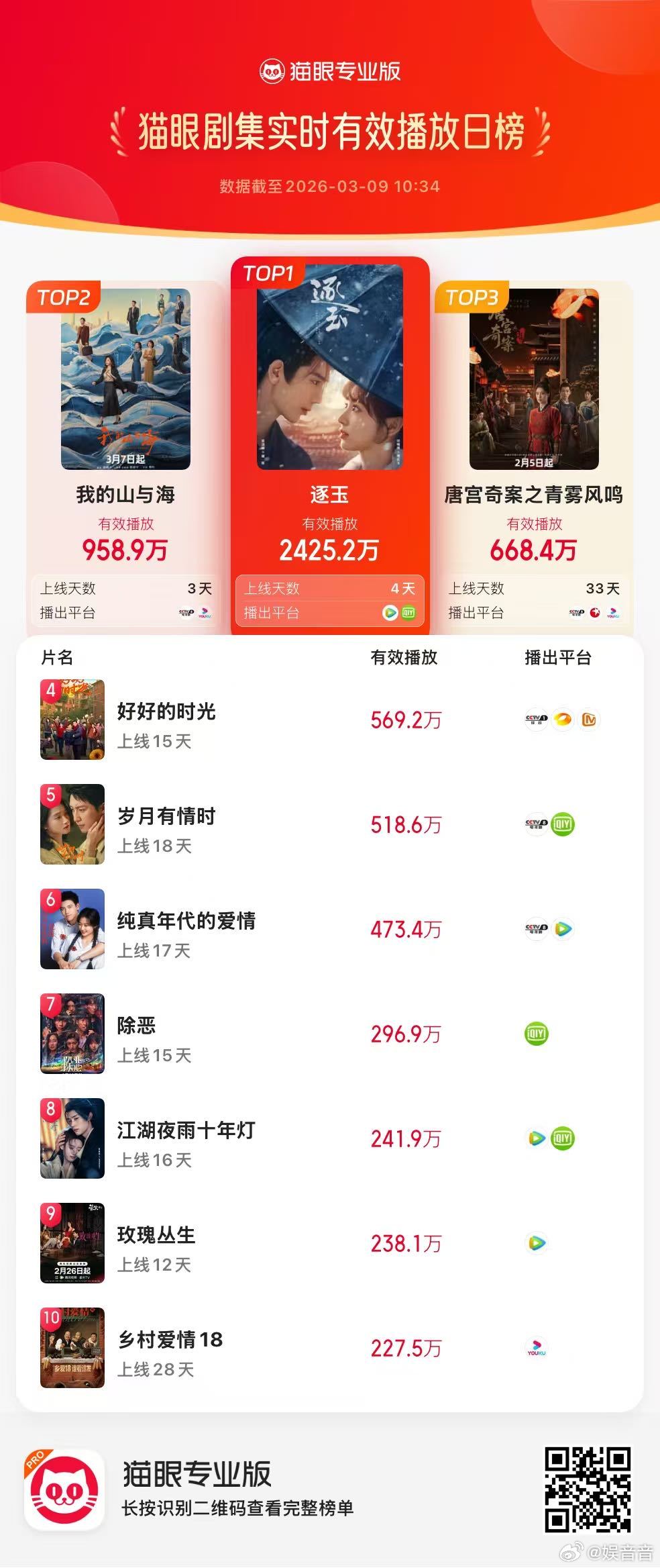 逐玉目前所有数据都对的上 开播前就被各大平台力推📣热搜、预约、期待值全拉满,本