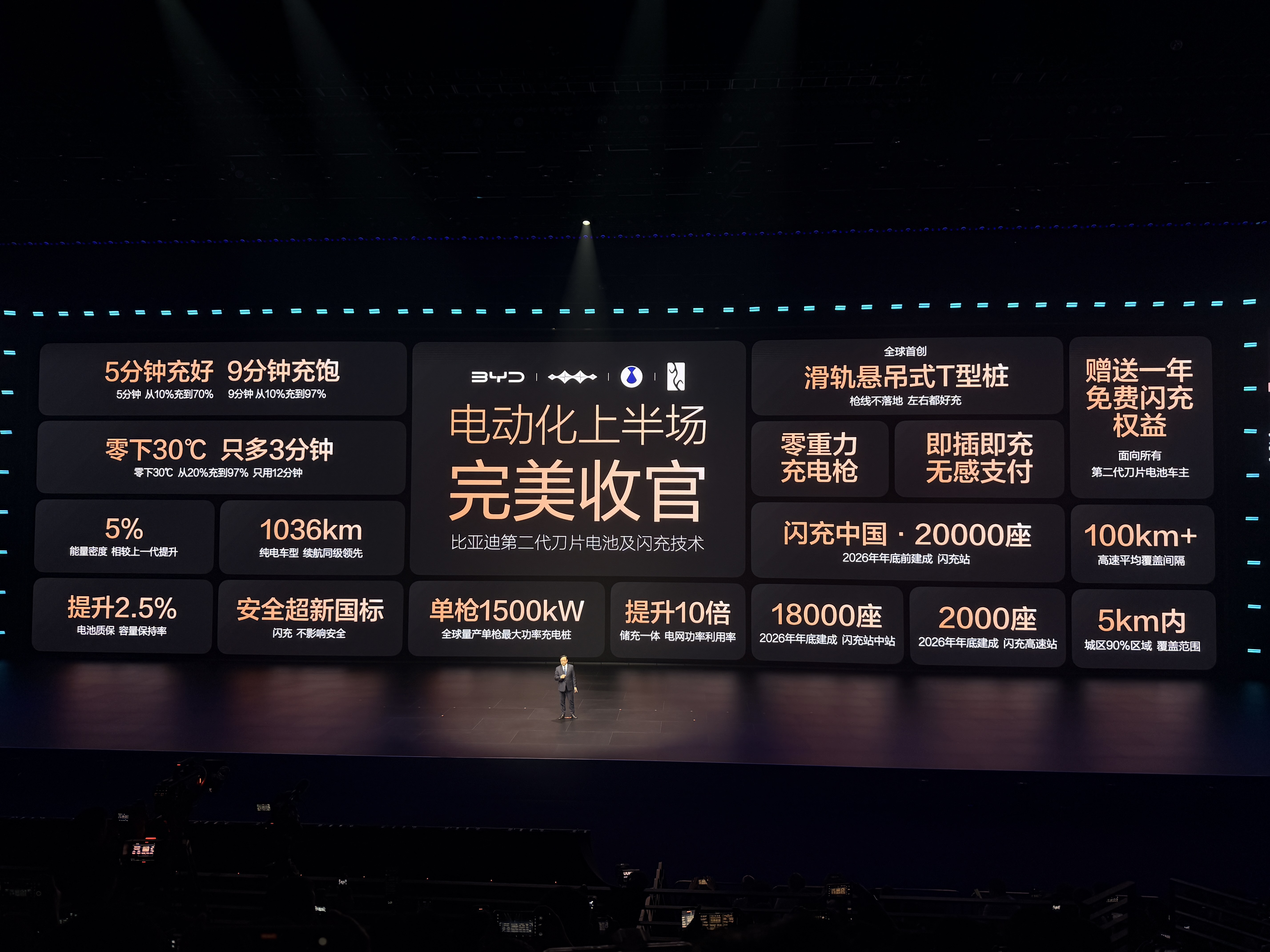 硬核闪充技术树立行业新标杆!比亚迪发布闪充中国战略,第二代刀片电池实现常温5分钟充至70%、9分钟充至97%,-30℃低温仅多3分钟,仰望、腾势、方程豹、宋 Ultra EV 等多款车型全系搭载。全新1500kW闪充桩配储能系统,不占电网资源,零重力充电枪+即插即充超便捷。年底将建成20000座闪充站,五一前落地1000座高速站,闪充车主享1年免费闪充,真的在解决纯电补能焦虑!