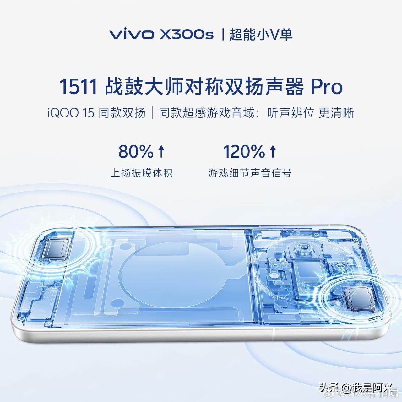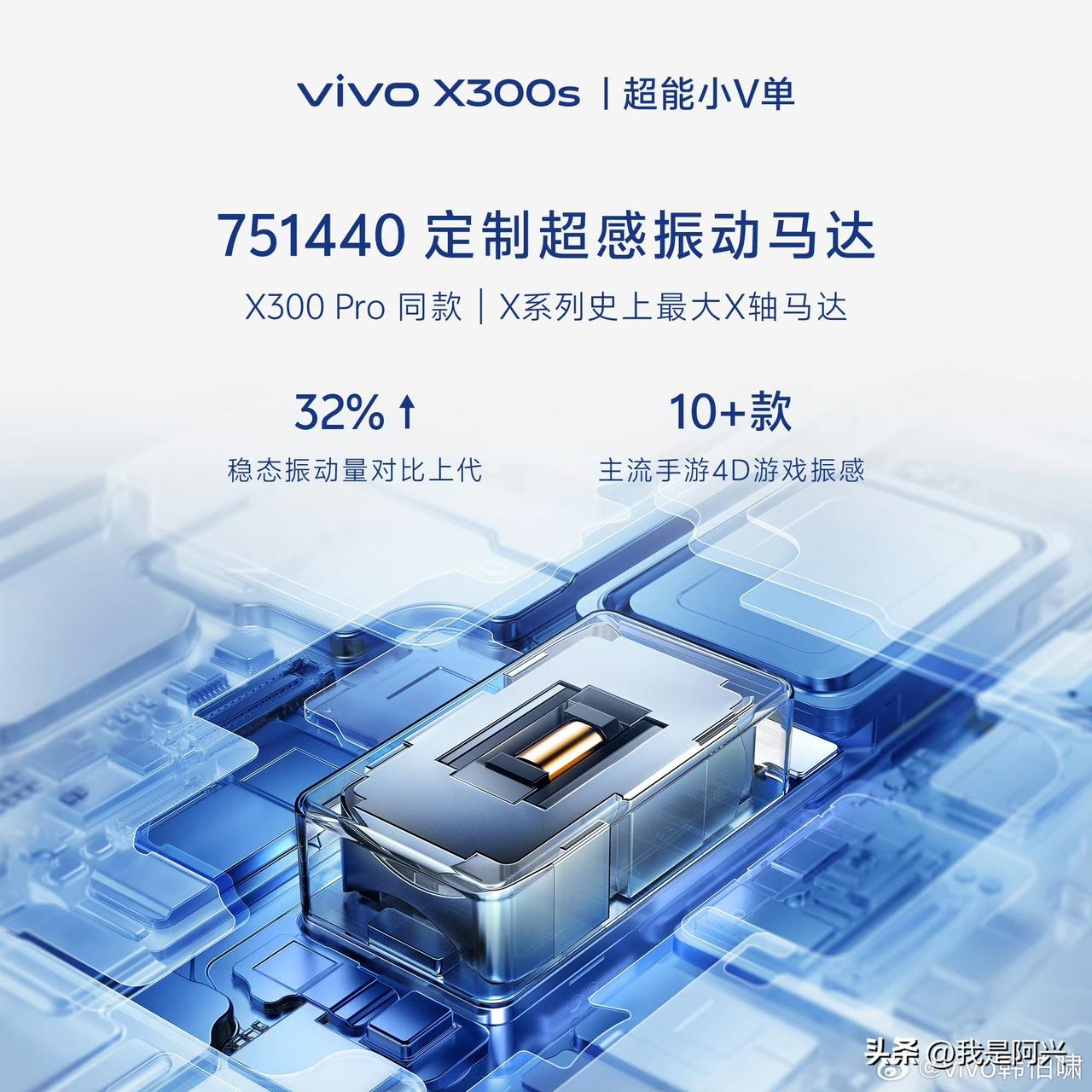 vivo X300s官方正式公布,没有采用改名策略,依然叫做s系列。 同时还公布了屏幕、扬声器、马达配置。 屏幕:京东方Q10 Plus,6.78英寸(中屏),144Hz,直屏。 扬声器:iQOO15 同款,双1511。 马达:751440,vivo X300 Pro同款。超越0816,媲美1016。