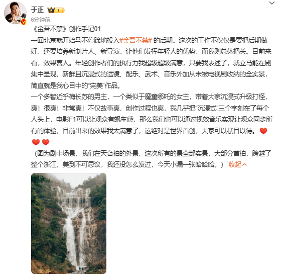 于正发金吾不禁创作手记于正金吾不禁所有的景全部实景于正发金吾不禁创作手记,并称: