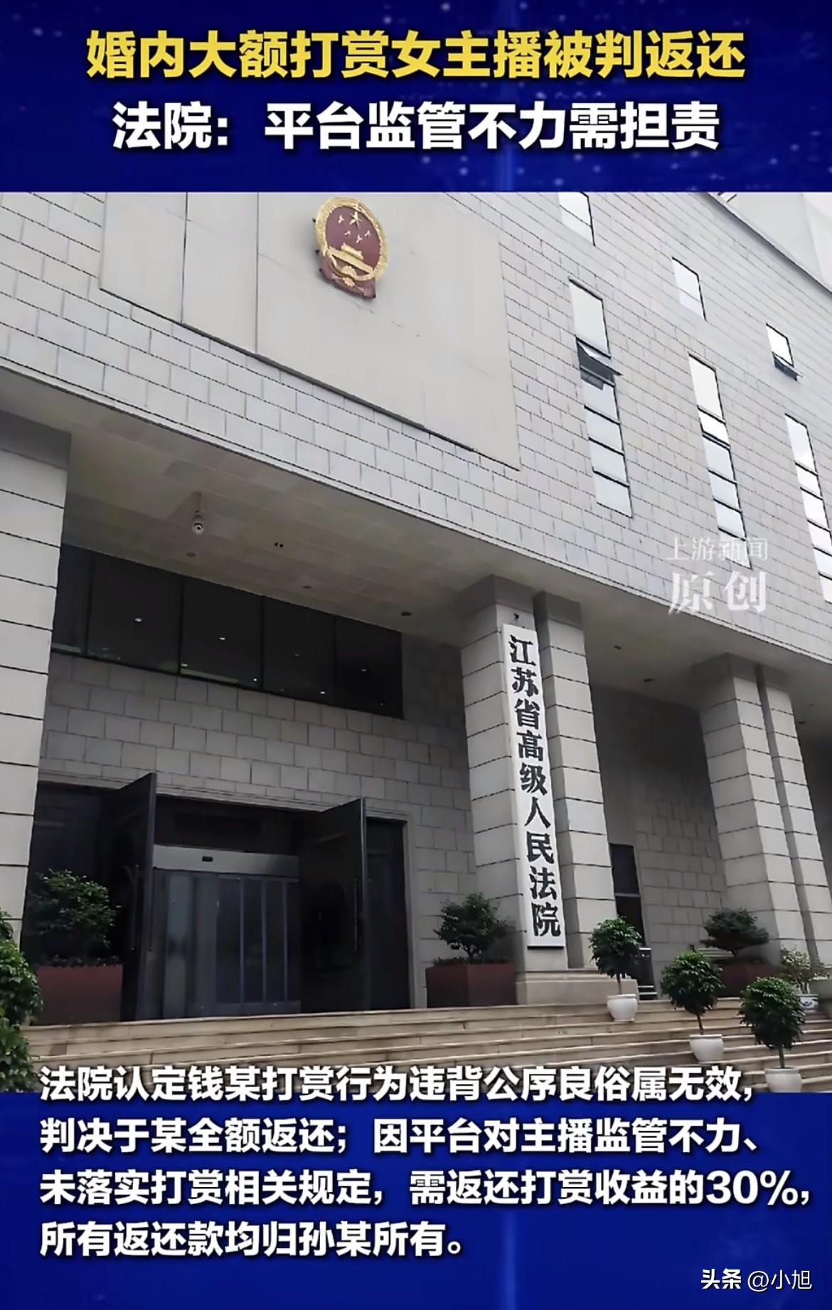 破防了!家人们,这绝对是今年看过最解气的判决。江苏高院刚公布的这个案子,直接把“榜一大哥”的遮羞布撕得稀碎——丈夫拿着和妻子的共同财产,给女主播疯狂刷礼物,还刷成了婚外情。结果法院判了:女主播全额退还,平台也得吐出三成,这些钱全归妻子一个人! 事情得从2018年4月说起。钱某在A网络平台刷到了女主播于某,一开始可能也就是看看热闹。但到了8月,两人加了微信,还见了面,关系彻底变了味。从线上到线下,从粉丝到情人,这条路走得顺风顺水。 成了这种关系后,钱某的打赏就不是图个乐子了。按照平台的分成规则,于某拿40%,平台抽60%。钱某这笔钱,说白了就是在用夫妻共同财产养着这段婚外情。打赏金额早就超出了正常看直播消费的范畴,家里的积蓄就这么被他一点点填进了直播间的窟窿里。 妻子孙某发现这件事的时候,心里的滋味可想而知。那些钱是夫妻俩一起攒下的,本该用在孩子身上、用在老人身上。孙某没忍气吞声,直接把女主播于某和平台一起告上法庭,要求确认钱某的赠与行为无效,让他们全额返还,而且这笔钱要归她个人所有。 法庭上,事情的原委掰扯清楚了。于某明知道钱某有家庭,还跟他发展婚外恋,并且引导他高额打赏,这主观上的过错很明显。而平台这边呢,对主播穿着暴露、直播时的一些挑逗低级动作,根本没采取有效管控,监管部门要求的消费提醒、打赏限额,平台也是消极应付。 法院的判决很干脆。钱某为了维持和于某的不正当关系,拿夫妻共同财产大额打赏,这违背了公序良俗,赠与行为无效,于某拿到手的钱必须全额退还。平台作为服务提供方,拿着高收益却没尽到监管责任,也有过错,得返还打赏收益的30%。最关键的是,钱某擅自大额打赏属于挥霍夫妻共同财产,所以返还回来的钱,全部归妻子孙某个人所有。 江苏高院的法官在解读这个案子时说得很明白。钱某和于某发展婚外恋,突破了主播和粉丝正常的互动关系,打赏金额明显高于正常网络娱乐消费水平,就是为了维系不正当男女关系才给的这笔钱。于某明知人家有老婆还往里凑,引导高额打赏,这钱一分也留不住。 平台这边也别想撇清关系。法官明确指出,平台作为网络服务提供者,在取得高收益的同时,必须履行好直播内容审查、充值数据监控、打赏限额提醒这些监管义务。你光顾着抽成赚钱,对主播打擦边球睁只眼闭只眼,那就得承担责任。 这个案子最有意思的地方在这儿。很多人以为,只要打赏了就能退,其实不是。关键在于有没有发展成那种关系,有没有突破正常的粉丝和主播互动。钱某这个案子能赢,是因为他们线下见面了,搞婚外恋了,这笔钱的性质就变了,不是消费,是用夫妻共同财产养情人。 于某以为自己傍上了榜一大哥,结果钱没留住,还得全额吐出来,竹篮打水一场空。平台抽走六成,以为稳赚不赔,结果被判退三成,白忙活一场还得搭上名声。钱某更惨,家底空了,夫妻感情毁了,里外不是人。 大家觉得,平台抽走的那60%,只退30%是不是太少了?