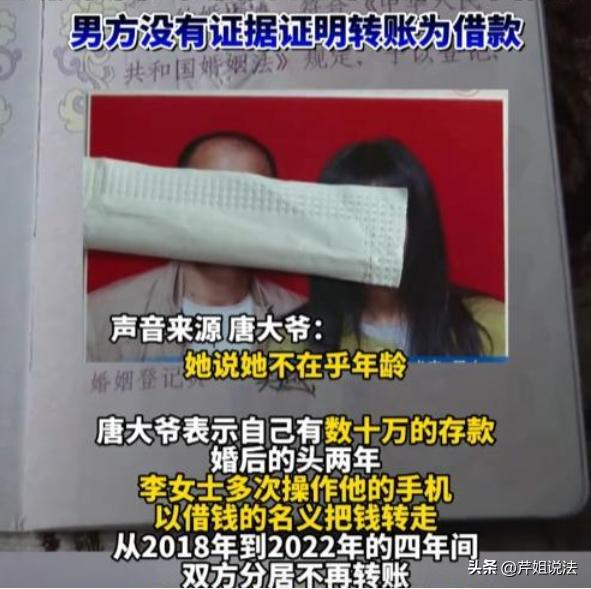 重庆,一位55岁的大爷竟然跟一个22岁的女子结婚了,两个人相识也就1个月,感情快速升温,之后立刻就去领证。婚后4年,两个人因为生活琐事开始闹不和,就准备离婚了。大爷不答应,他说:这个女子跟我结婚之后,总是拿我手机转钱,前前后后转走了15万。大爷的意思是,想要离婚可以,但是得把这15万元还给他。 一个看上对方的钱,一个看上对方年轻,相差了33岁,谁还能说真的有“一见钟情”之说呢? (本案例参考来源:找法网) 要说老牛吃嫩草,这则案例算是很经典了。 唐大爷55岁,单身,很喜欢玩社交软件。这一天,他刷到了一个年轻的女士的视频,对方长相甜美,这让唐大爷一眼心动。 互相加了联系方式之后,女子说她姓李,今年22岁。 虽说是相差了33岁,唐大爷还是相信缘分,他认为这就是“忘年恋”啊。 尤其是,唐大爷感觉自己,见到李女士的这一刻,他开始相信“一见钟情”了。而且李女士对自己的态度也不差,也有想要在一起的意思。 相识之后,唐大爷跟李女士说:“我可比你大了很多啊。” 谁知道,李女士却没有拒绝,她认为,年龄并不是阻碍二人在一起的屏障。 就这样,55岁的唐大爷、跟22岁的李女士,两个人就正式走到了一起。简单相识1个月,两个人就去匆匆领取了结婚证。 而年轻的李女士究竟看上唐大爷什么了,这个也就不清楚了,或许这就是真爱吧。 结婚之后,二人就正式同居在一起,开启了看似美好的生活。李女士作为妻子,一直也就依赖着丈夫生活。 生活开销、婚后消费等,都是唐大爷在承担。不过结婚之前,也没有切切实实的给对方彩礼钱、购房钱这些,只是口头说会给彩礼、购房款,不过一直没有兑现。 婚后有一天,李女士直接操作唐大爷的手机,转走了156920元。但是没过多久,李女士又再次给唐大爷转回了156600元。 这一份是比较大额的转账。 其他就是日常生活开销,包括婚后的一些消费等。 不过谁结婚不需要花钱呢,每一对夫妻俩结婚之后,开销肯定很大,这个倒也不知道去细细算账。 再说说唐大爷的这场婚姻,结婚之后,也经常会因为生活琐事拌嘴、吵架、起争执。 二人的夫妻生活,并不是非常的圆满。4年之后,两个人就因为生活不合,闹起了离婚。 不过,提到要离婚,唐大爷就准备跟妻子算算账了。他开始拉账单,说婚后花费了他很多钱,要李女士还钱。 最为直接的,就是给李女士转账的那笔费用156920元,这个银行里可以直接拉出凭证。 唐大爷就拿着这个凭证,直接就一纸诉状,将李女士给上诉了,要求她偿还这份钱。 对此,李女士抗辩,她也拉出了一个银行流水凭证,是她反向给唐大爷转账的钱,金额是156600元。 李女士表示,当时也就是借着使用了一下,没多久立刻就还给他了,都是有凭证的。 但是唐大爷就是不肯承认,非说婚后还有其他的各种生活开支,已经耗光了他半辈子的积蓄,就要李女士还他15万元。 那么,这件事相关部门是怎么判定的呢? 工作人员在审定的时候认为:都是结婚之后产生的开销,夫妻之间的经济往来属于正常行为。最后驳回唐大爷的全部诉求。 男子说妻子结婚后花费了他15万,但是也没有借款凭证、也没有其他的依据,要求妻子偿还自己这15万。这个诉求是否可以得到支持呢? 结婚之后,没有约定,就视为共同使用。 根据《民法典》第一千零六十二条规定,夫妻在婚姻关系存续期间所得到的财产位夫妻共同财产,双方享有平等的处理权。 因此,及时妻子在结婚之后确实支出了15万元,只要这些资金来源于婚后,并且是夫妻的共同生活开始,用于家庭生活,哪怕是用于合理的个人用途,都不构成对丈夫的“欠款”。 婚姻中如果去追溯金钱问题,往往反映了二人之间的情感跟信任危机。与其事后追偿,还不如事前协商。 把事说透、把理讲清、避免纠纷。 法律面前人人平等,不管是闪婚、还是青梅竹马、不管年龄差多少,法律只会看证据,不看婚后感情的深浅。 不要以为自己付出金钱就很委屈,婚后也长达4年,法律不会评判感情,只会规范财产关系。 对此,你怎么看呢?