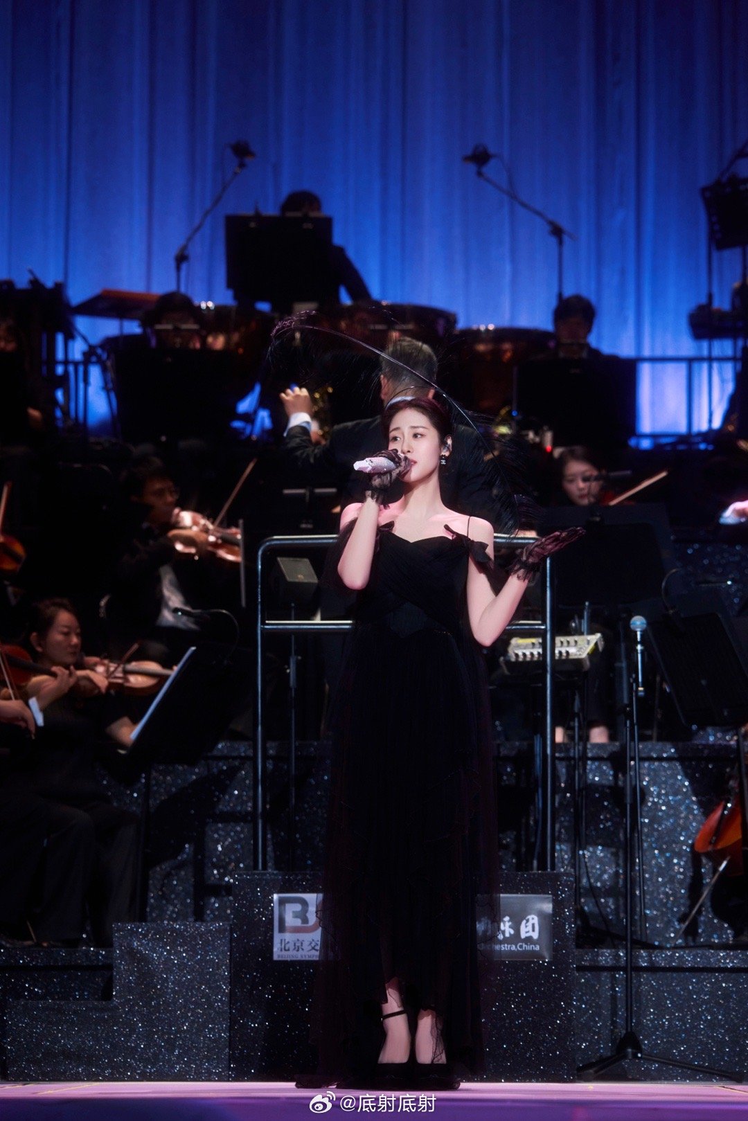 景甜渐变蓝色礼服写真