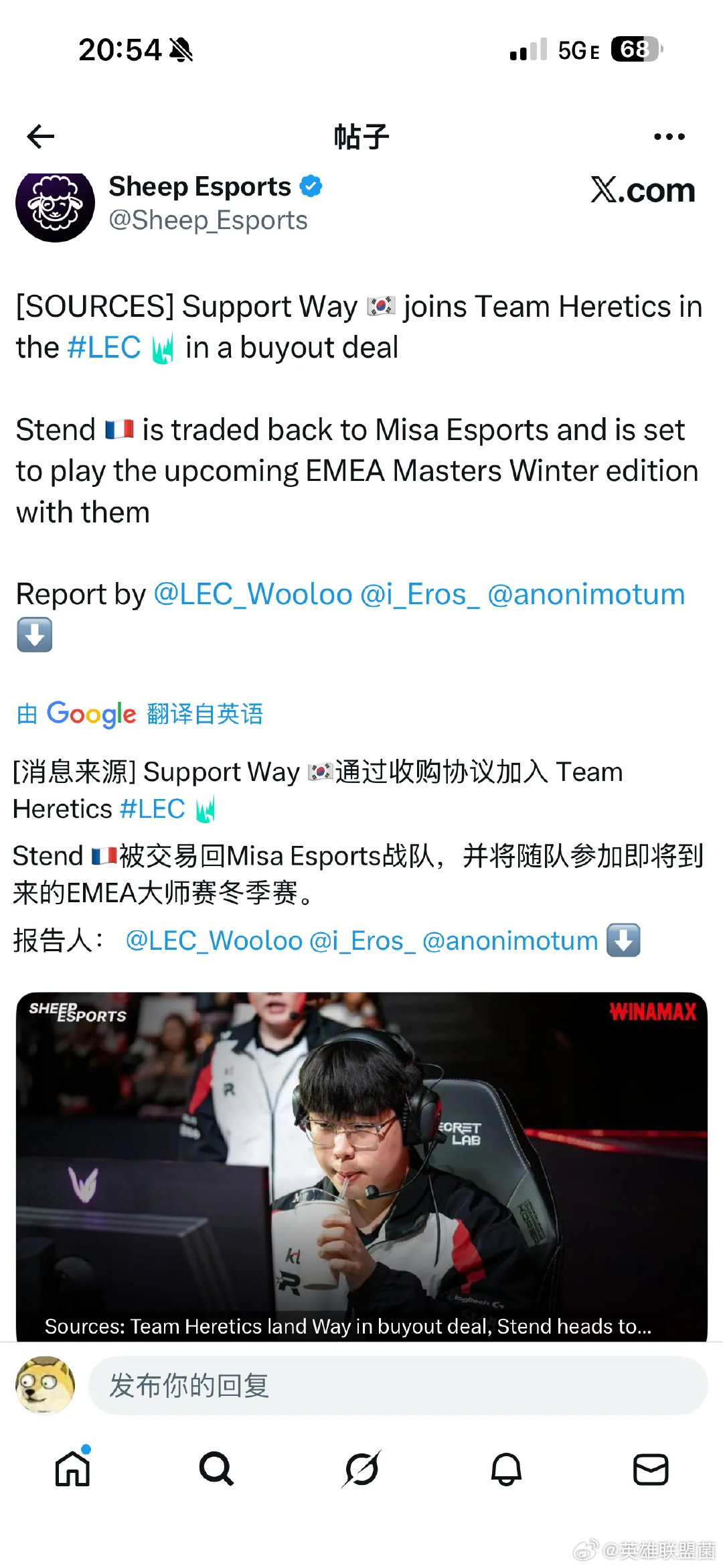 Hype和Way这对前KT下路第一赛段加入土耳其的MISA并且拿到了冠军,这次被7w美金买断,LEC的下路强度又要提高了,LPL国际赛的对手从G2/MAD多了个TH.....