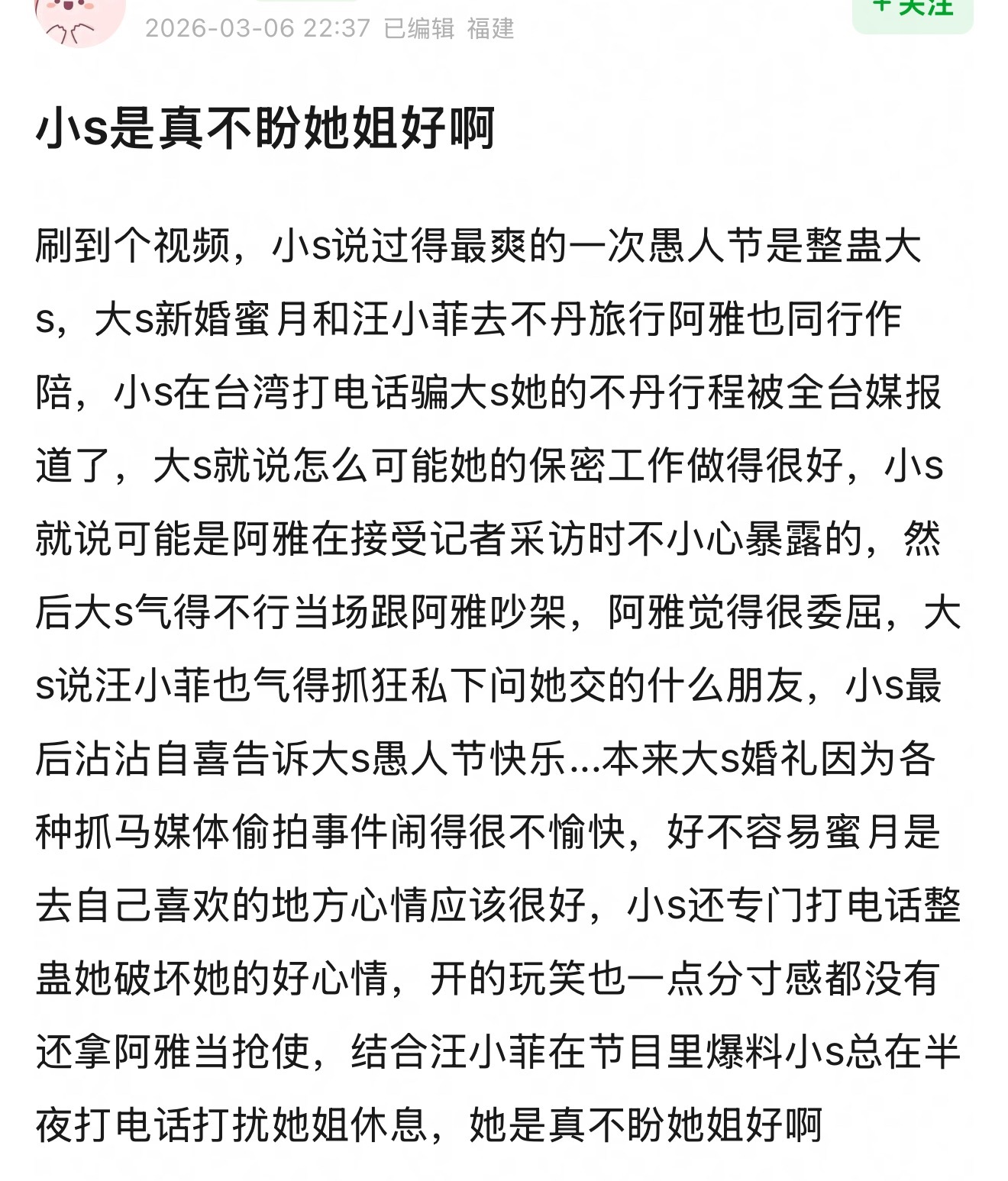 这家人真的好爱演,网友扒出S曾经对大S的一些行为,都一致认为她从没盼过她姐好…