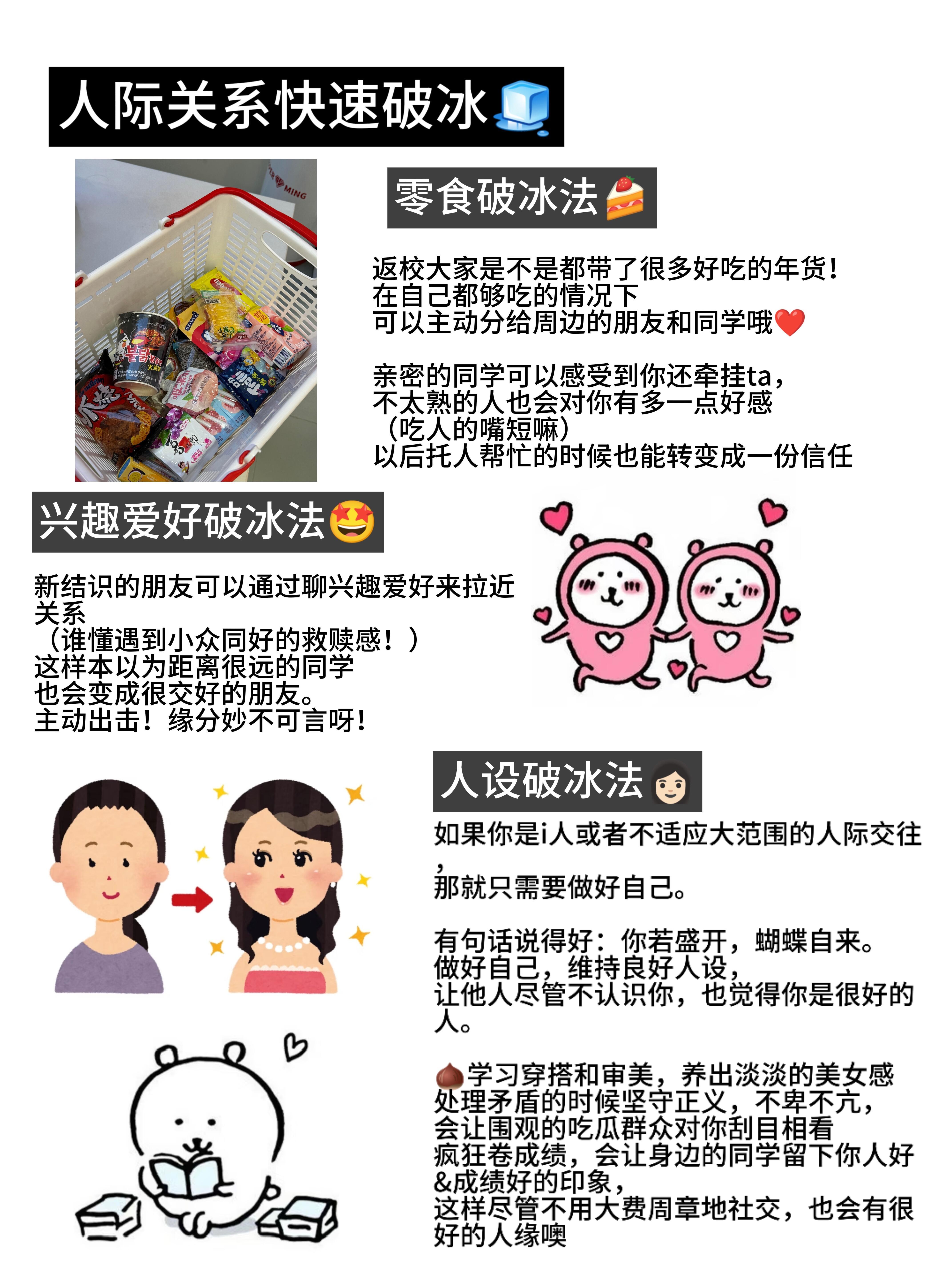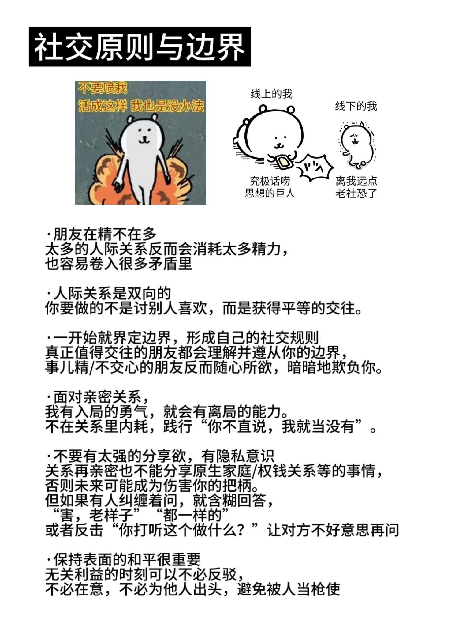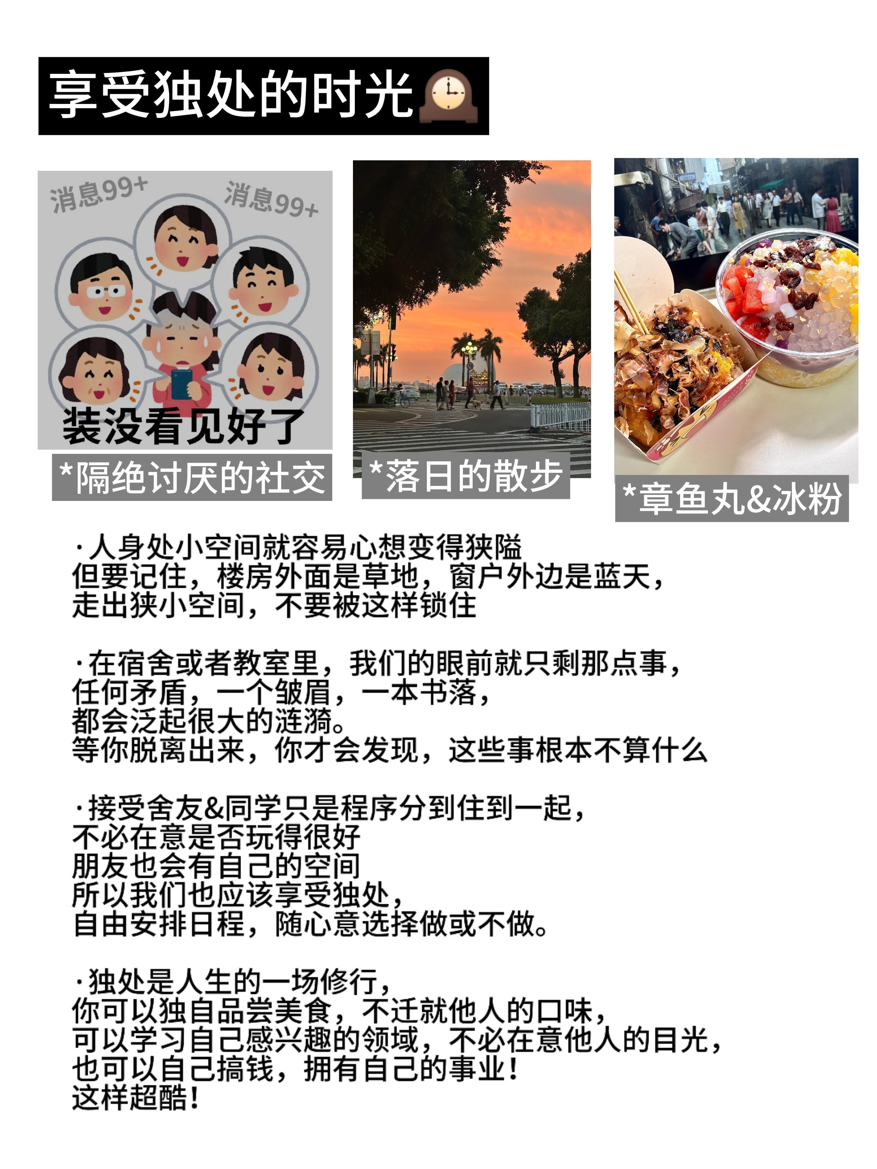 普通的我总是期待被人关注,害怕自己落单被人嘲笑,因而总是强行融入融不进的圈子。就算交到了朋友,也总是绷得很紧,读别人说的话很敏感,总是内耗,回到家里反复想着今天是不是说错了,做错了什么,在关系里总是感受不到快乐,更多的是压力和不安,甚至为了迎合他人不惜替他人出,然后落得坏名声,再一次陷入了没有朋友的孤单旋涡。但后来我才慢慢明白,好的社交关系是能让你尽情地舒展自己,真实地展现自己,你才会遇到同频共振的人。也是这样的人,才能作为一路走来的好友。现在我走出了这样的阴影,也给大家分享缓解社交焦虑和内耗的小tips~开学焕个新人设开学季
