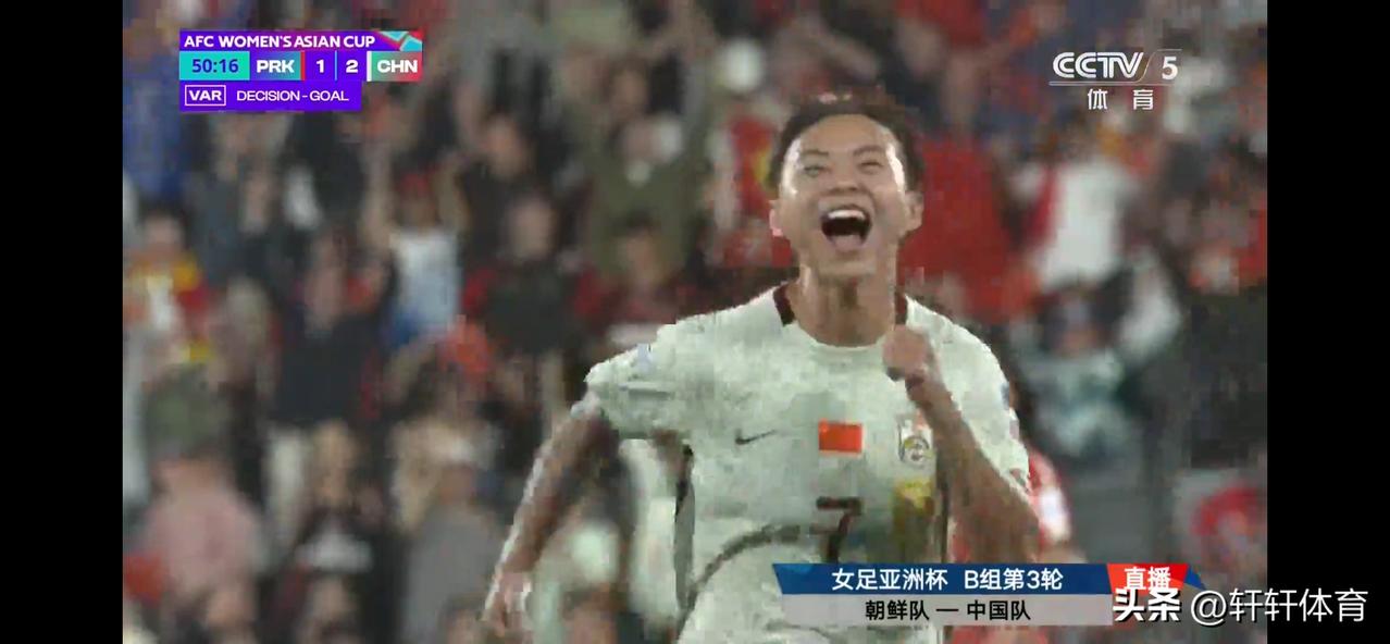 半场2-1中国女足队员在大雨中完成上半场逆转,但是比赛还没有结束女足姑娘们仍需要努力,上半场比赛进行到第32分钟朝鲜女足由金景英为朝鲜女足首开记录,随后中国女足掀起了疯狂的反扑,距离朝鲜女足进球仅仅过去2分钟,中国女足陈巧珠利用角球机会外线远射将比分扳平,中场结束前中国女足王霜接张程雪助攻,将比分改写成2-1,朝鲜女足对这个进球是否越位一直在跟裁判交涉,但是通过助理裁判视频认证确定进球有效。