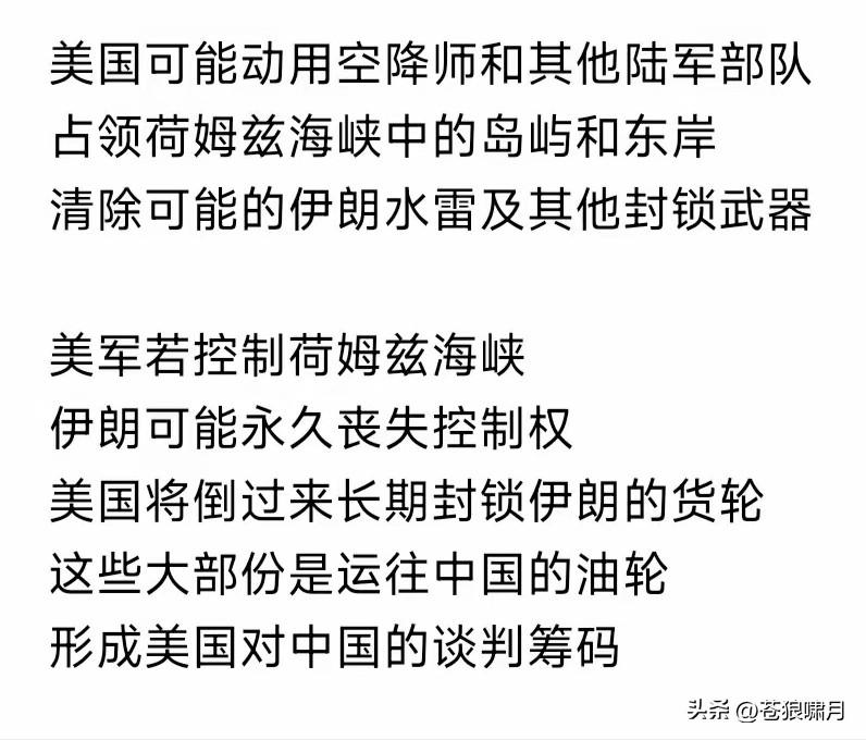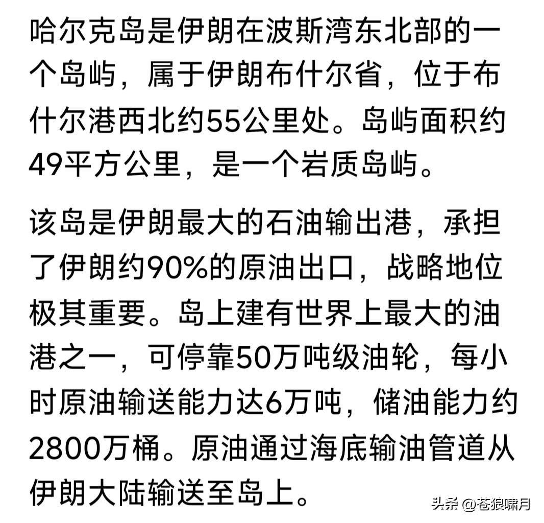 美精锐空降师撤出演习,动向成谜引猜测!有人说要空降伊朗作战;也有说要去夺取浓缩铀;还有说要去占领霍尔木兹海峡上游港口哈尔克岛! 大多猜想指向第三!因哈尔克岛是伊朗最大港口,输出量占其出口量90%!伊朗外销油气,均由此港装船,经霍尔木兹海峡运往亚澳欧美等地。 据悉目前伊朗海军,已被美军打残,霍尔木兹海峡也被美军掌控。如果再拿下哈尔克岛,将全部控制伊朗油气出口,彻底扼杀赖以生存之命脉! 不得不说,这是一步妙棋!夺取伊朗领空,瘫痪军政机构,摧毁军事基地,清除核研设施,再把海运通道封死!不用登陆作战,就取得全胜了! 关键是伊朗,一旦失去霍尔木兹海峡控制权,将永远不再回来!即便像委内瑞拉低头服软,美军也不会全部归还控制权,最好结果是双方共管? 但伊朗会吗?估计是个疑问。何况伊朗新“最高领袖”产生,又有革命卫队“贴身护驾”,国内守旧势力依然深厚。谁能打破铁幕?还得靠内力? 回看伊朗历史,巴拉维时代何等富裕?霍梅尼一场“大革命”,断送繁荣局面。哈梅内伊接棒继续斗争,扶持各国恐怖武装,闹得中东鸡犬不宁! 俄乌战争引发以哈冲突,给中东带来变数!美以两年打垮哈马斯,镇住胡塞真主党,颠覆叙利亚,抽空还把南美搞定了。就剩下伊朗这个堡垒! 这个堡垒不好啃,美以也不想多伤亡!可能还要故伎重演,先摧毁其工业科技军事能力,再封锁困死其经济命脉。只要你不服,就继续封下去? …………