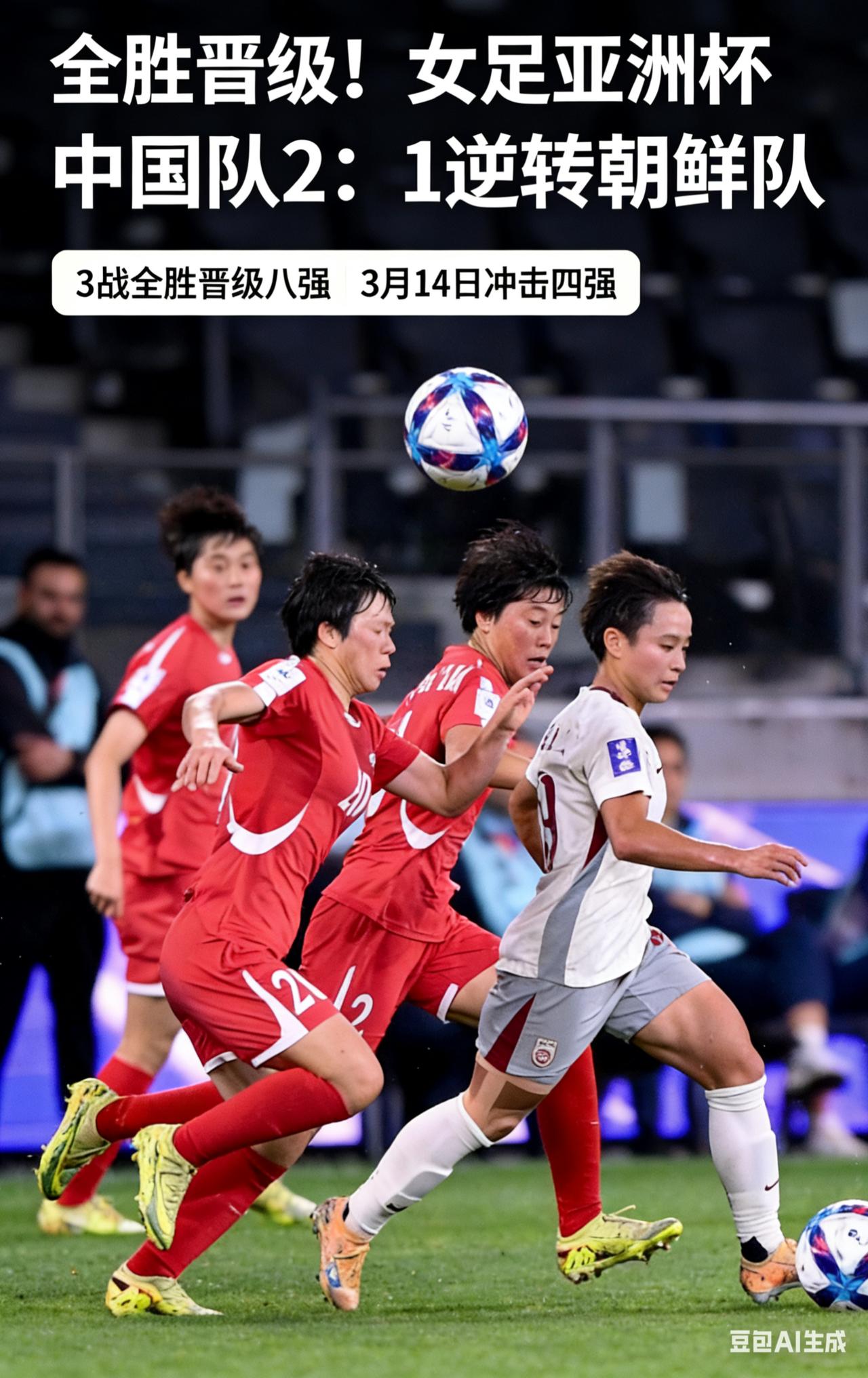 太燃了!女足亚洲杯中国队2:1逆转朝鲜,全胜晋级八强!真的被这场比赛狠狠热血到了!😭 3月9日的女足亚洲杯B组小组赛,卫冕冠军中国队在先丢一球的绝境下,硬是连扳两球,以2:1逆转战胜朝鲜队! 三战全胜拿下小组第一,昂首挺进八强,这波操作真的太提气了! 看姑娘们在赛场上拼尽全力的样子,每一次奔跑、每一次拼抢都透着韧劲。落后不慌,逆风翻盘,这就是中国女足的精神啊!💪 3月14日就要迎来四分之一决赛,继续期待女足姑娘们乘胜追击,再创佳绩!为中国女足加油!🔥 中国女足 女足亚洲杯 2026女足亚洲杯 逆转取胜
