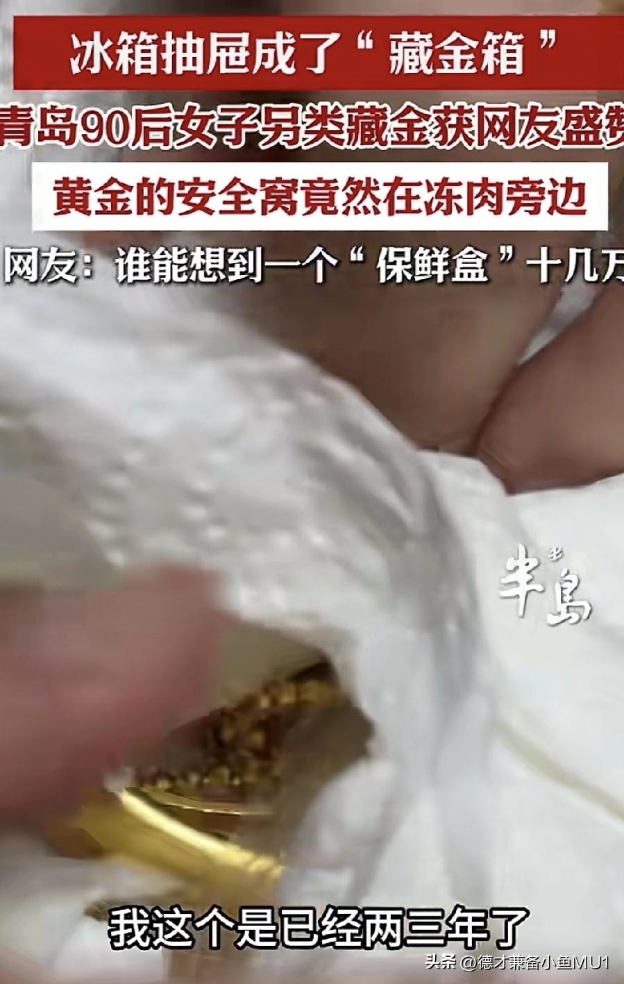 青岛90后女子在家另类藏金获网友点赞, 女子在刷小红书时,看见网友在讨论家里的黄金放在什么地方最安全,有网友说出一趟远门,家里有黄金和金疙瘩,不能随身携带的包成饺子冻在冰箱里,是最安全,最省钱的方法,女子也分享了自己藏精的方法,一直都是藏在冰箱的抽屉里,去银行租个保险柜,又有点儿不值当,毕竟都是首饰,经常还要用,家里买个保险柜,感觉也不值当,保险柜也不便宜,自己家冰箱塞的东西也比较多啊,黄金首饰用保鲜盒装好放进里面比较安全些,谁也不会想到,一个保鲜盒十几万黄金首饰放在冰箱里,女子把自己的方法分享出去,引发许多网友点赞,还夸赞女子还挺聪明,不过女子这一分享,这下可好了,冰箱下次就是小偷的目标对象了吧! 对此,大家怎么看?