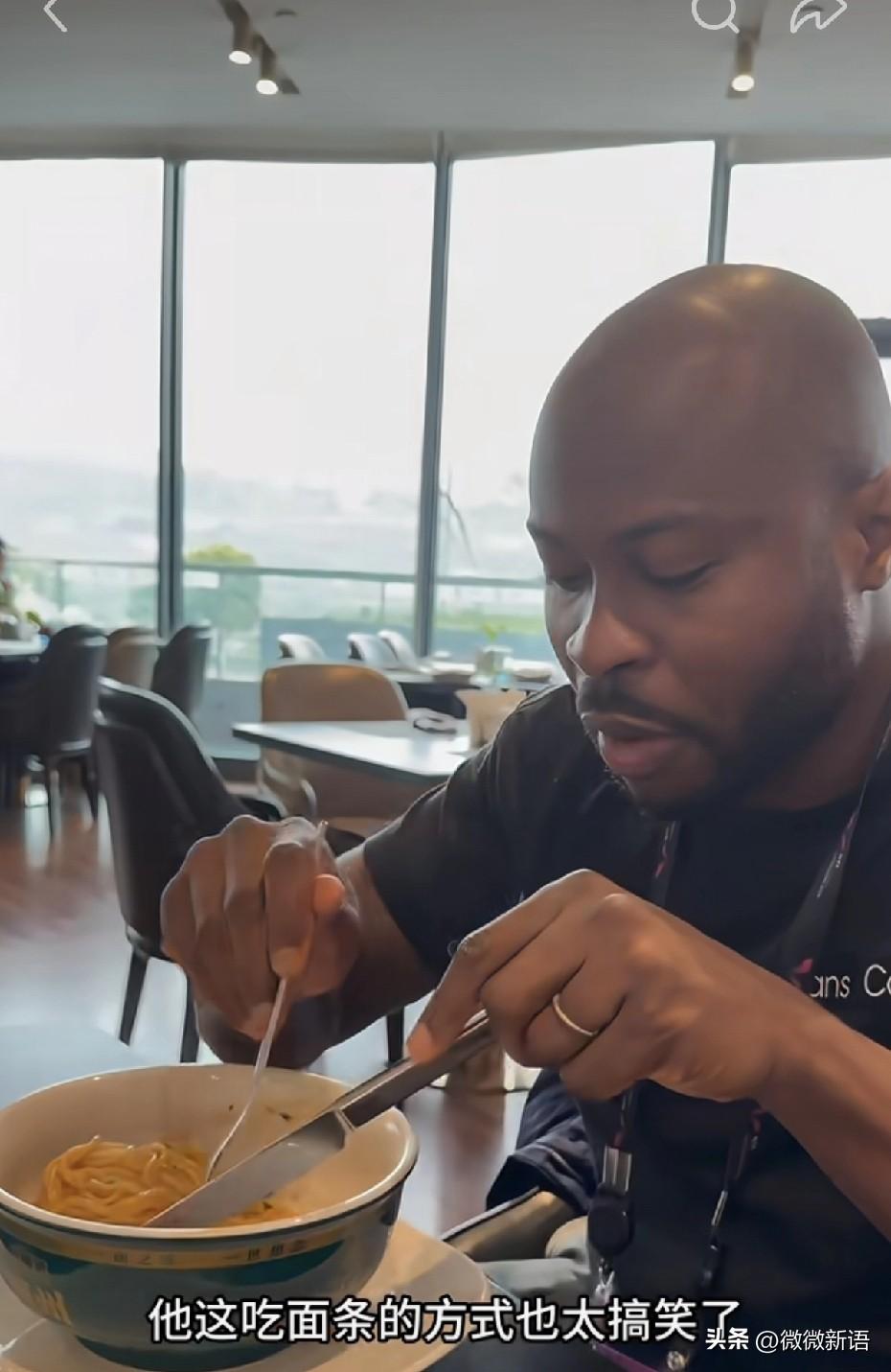 阿鲁纳用刀叉吃面条,吃出了西餐的感觉,阿鲁纳的经纪人说:“他吃面条这方式也太搞笑了”,看来阿鲁纳不会用筷子,只能用刀叉来吃了。 昨天是三八妇女节,主办方给每一位女生都准备了花束,还挺好看的,阿鲁纳的经纪人要了一碗牛肉拉面,这个碗很眼熟,看着是昨天王皓和马琳一起吃的那个面,昨天王皓说辣椒不辣,这个女孩儿尝了一口说挺辣的,看来皓哥还是能吃辣。 阿鲁纳也在吃饭,他先吃了一盘水果,然后吃面条,阿鲁纳吃面不用筷子,拿着刀叉卷着面条吃。这次重庆冠军赛,王开担任阿鲁纳的场外教练,刚刚看到王开发抖音了,他说明天阿鲁纳对阵排名第六的菲利克斯·勒布伦,拼了,然后给阿鲁纳加油。现在阿鲁纳打比赛,王开经常跟赛,去年阿鲁纳还跟着王开在东北玩了一段时间,阿鲁纳也学习了一些中文。