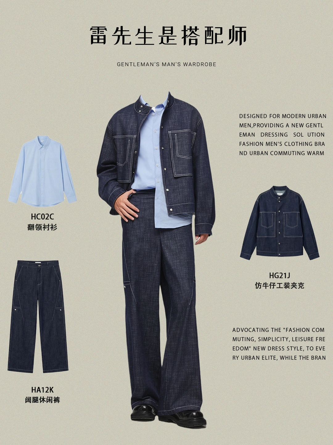👔 LOOK 1:深海蓝套装 + 天蓝色衬衫 (智性、沉稳、层次感)