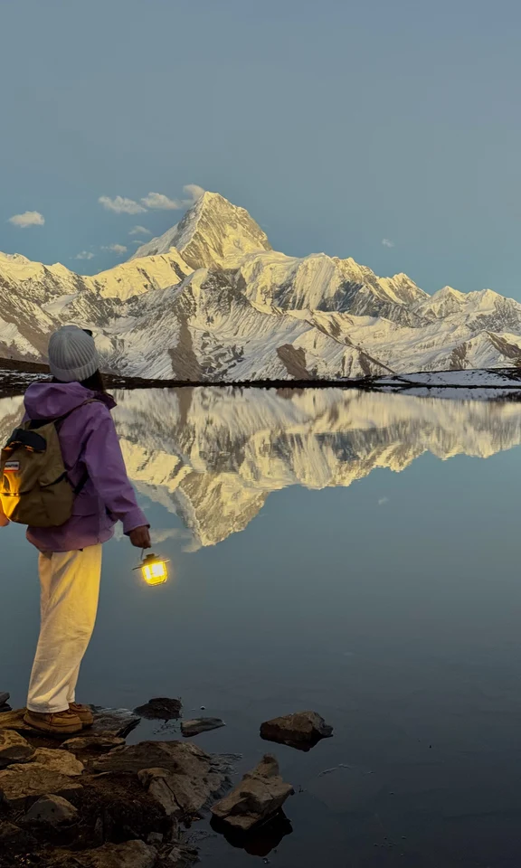 [向右R]最后从垭口再下到湖边,大概需要20分钟,山路比较陡,下到湖边看完日照金山后,再原路爬回来,这段比较费力(做好心理准备),体力不支的话建议骑马(200💰)