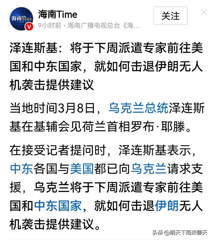 乌克兰成了武林高手,中东各国及美国都得向其求援? 或许是百炼成钢吧,实战经验丰富,支援中东各国及美国,也正是证明乌克兰实力的时候,这个广告效果绝对杠杠的。 不知道俄罗斯将作何感想?伊朗都能把美国打得向乌克兰求援,自己实力远超伊朗却奈何不了小小的乌克兰,问题到底出在哪? 1