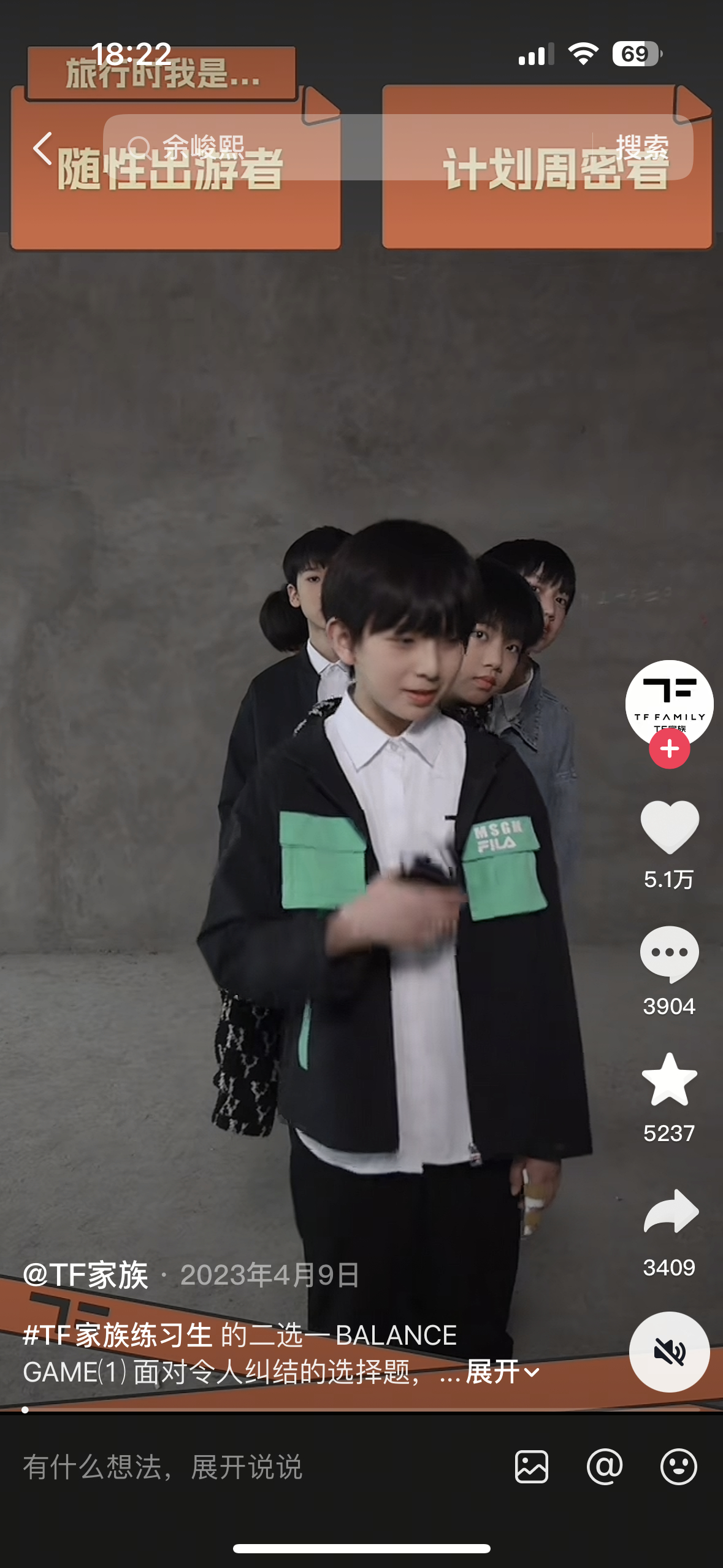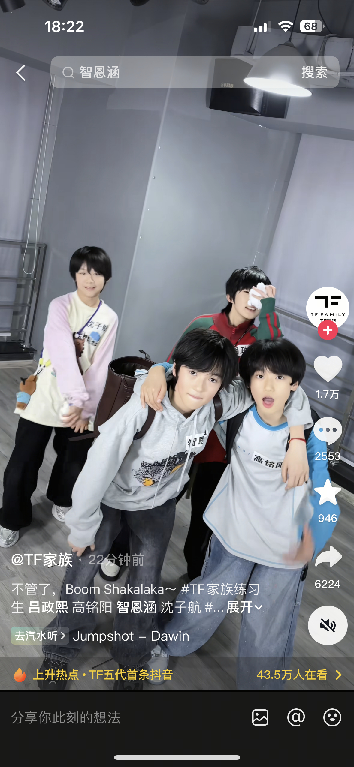 去翻了一下小四四们第一次出现在TF官号的时间是2023.4.9,登陆计划蝴蝶效应也是差不多同时间开始的,然后2024.8.26登陆日成团。小五五今天也就是2026.3.9以多人非特殊宣传歌曲第一次出现在官抖,如果按照登陆计划的时间推,应该近期🎀会有新的计划推出,出道也可能近在咫尺了,这一次的生周冲热销冲秒切真的特别特别重要…