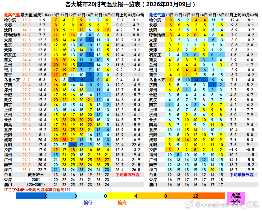 而在青海甘肃等地,未来2天晴朗干燥,温差更大,一天中高低之差可达20℃甚至25℃以上。穿衣要至少准备两个季节的服装。比如西宁明天最低零下4℃,下午最高17℃,温差21℃。另外后天可以看到冷空气影响新疆北部,导致10-20℃剧烈降温。