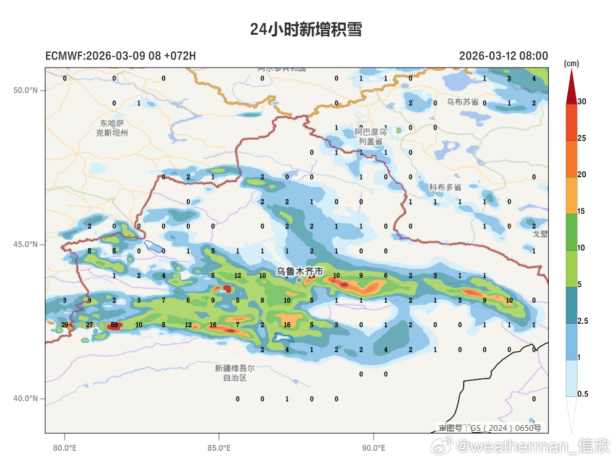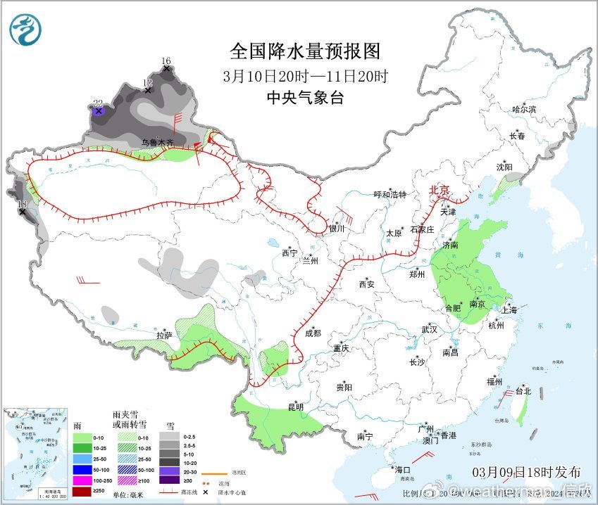 明天在新疆阿勒泰山区和南疆西部山区等地有中到大雪,局地暴雪(10~18毫米)。10日晚-11日,新疆北疆北部和沿天山一带、南疆西部山区等地部分地区有大到暴雪,局地大暴雪(20~22毫米)。11日晚-12日,新疆天山中部和东部及南疆西部山区等地部分地区有中到大雪,局地暴雪(10~18毫米)。