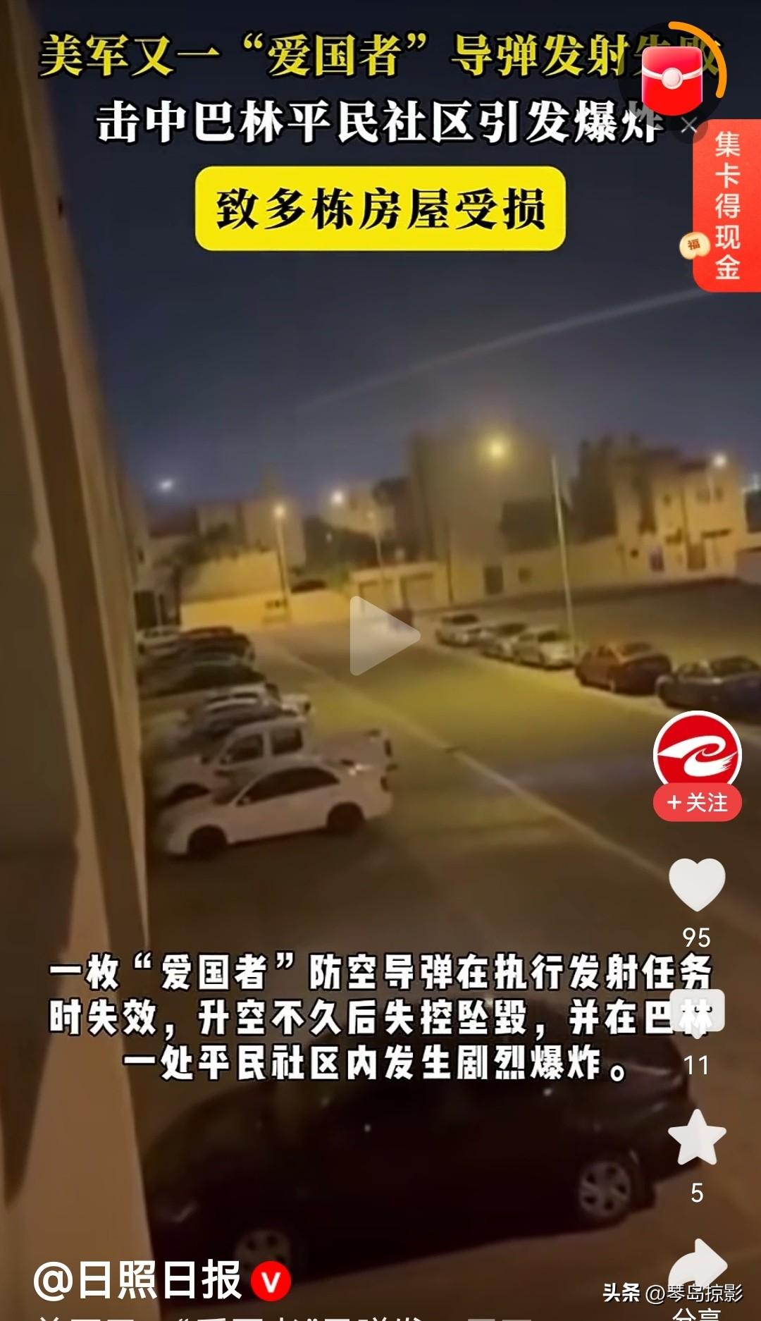 美国发射导弹击中巴林平民区,被当地居民录下了视频,爆炸导致多人伤亡。