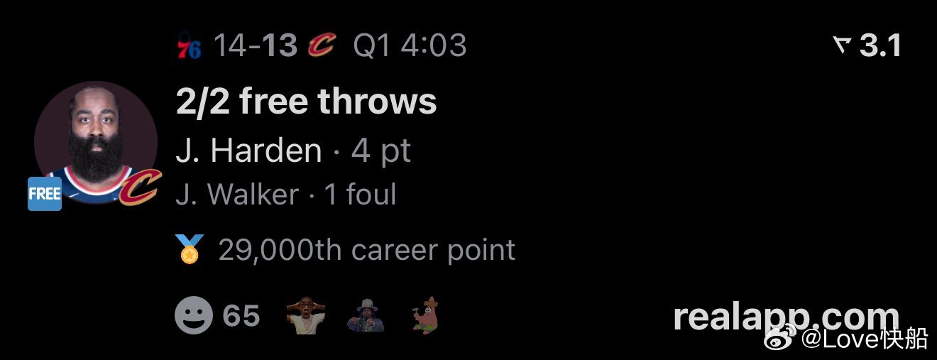 哈登在对阵费城的比赛首节拿到7分!这样的话,哈登生涯总得分突破29000分,成为